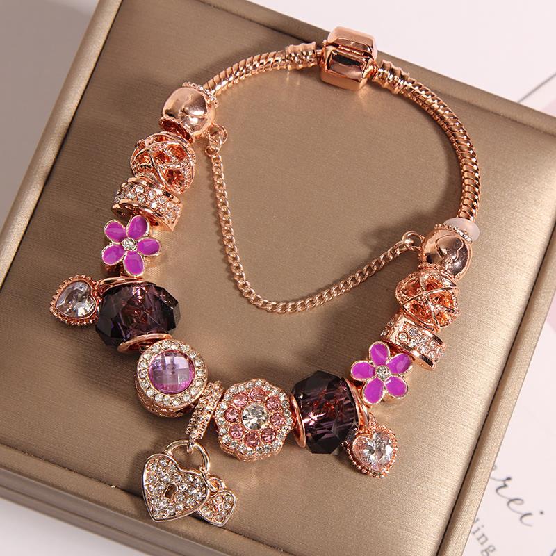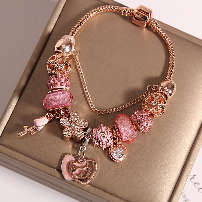 Fairy Leaf Crown Crystal Plated Rose Gold Women's Bracelet