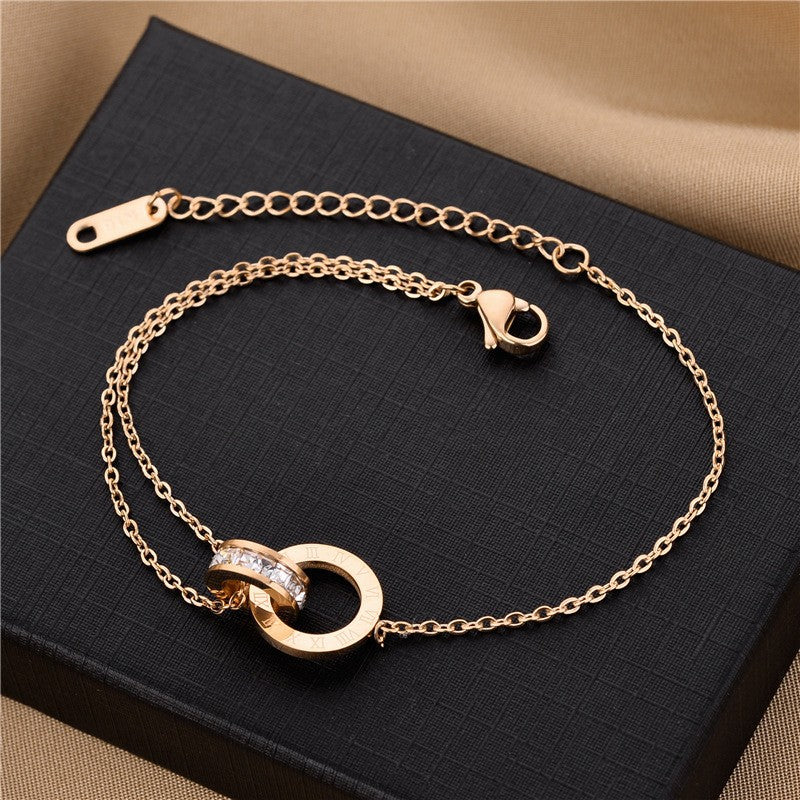 Rose gold-toned - interlocking Roman numeral bracelet (single layer)