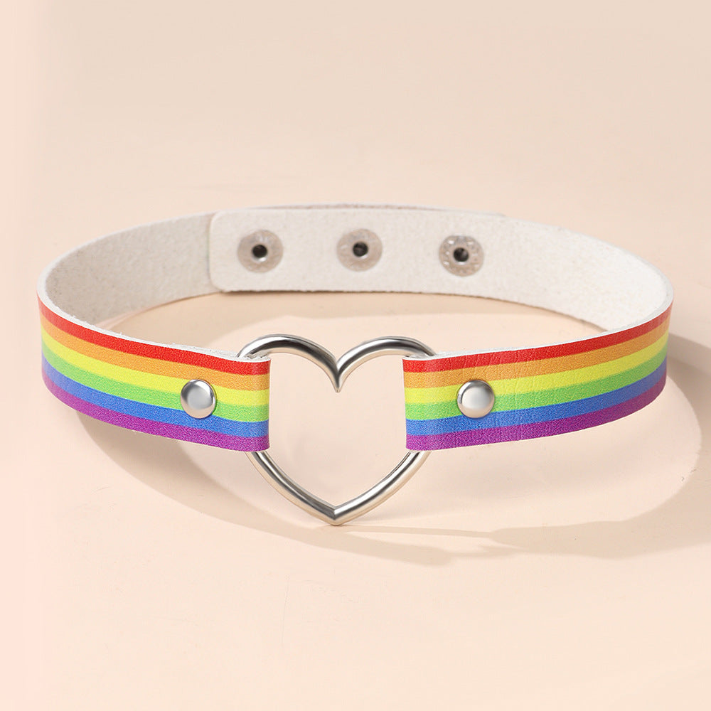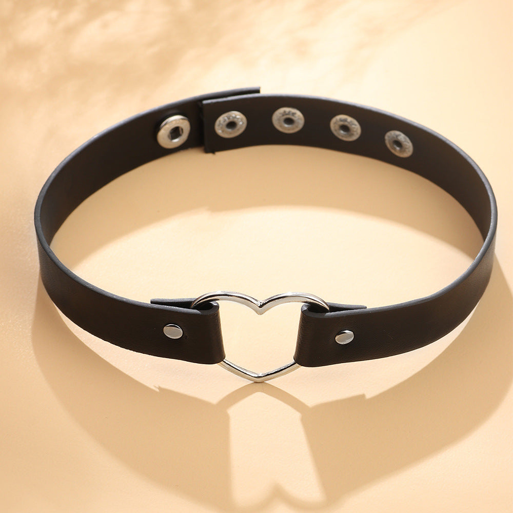 Fashion Heart Shape PU Leather Choker Necklace for Women