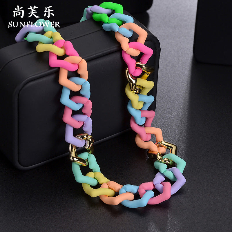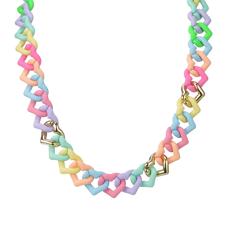 Fashion Heart Shape Acrylic Patchwork Stainless Steel Necklace - Elegant Design for Women
