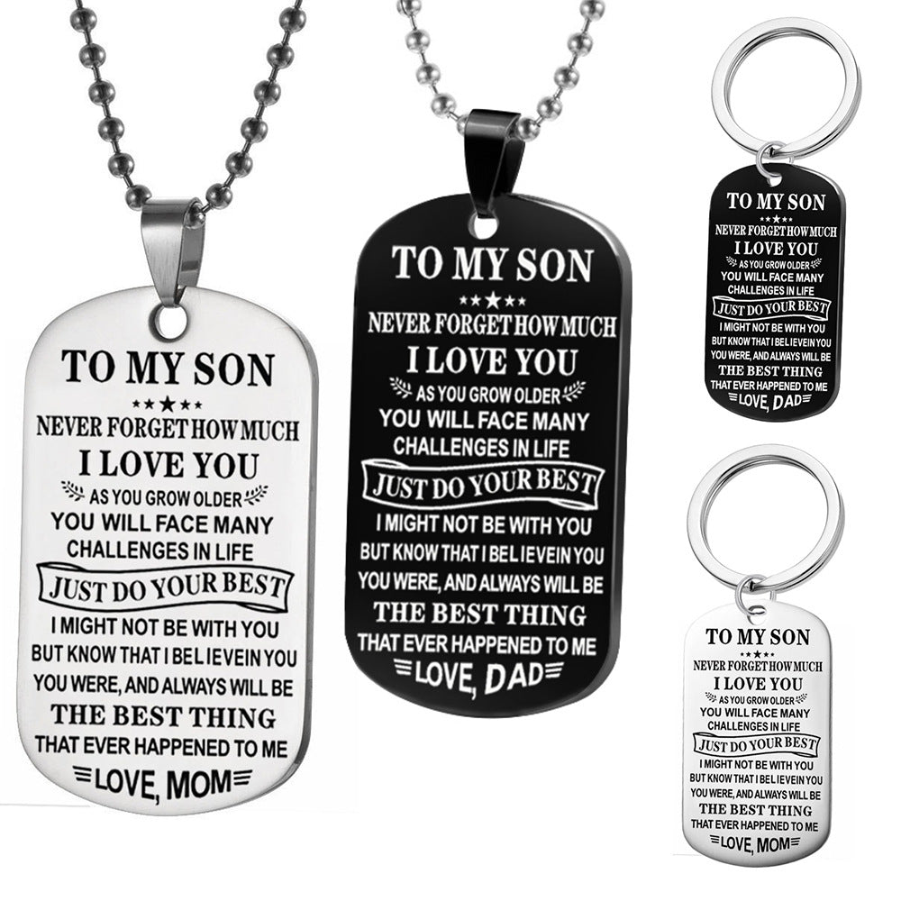 Fashion Stainless Steel Letter Pendant Necklace for Son - Personalized Dog Tag Gift