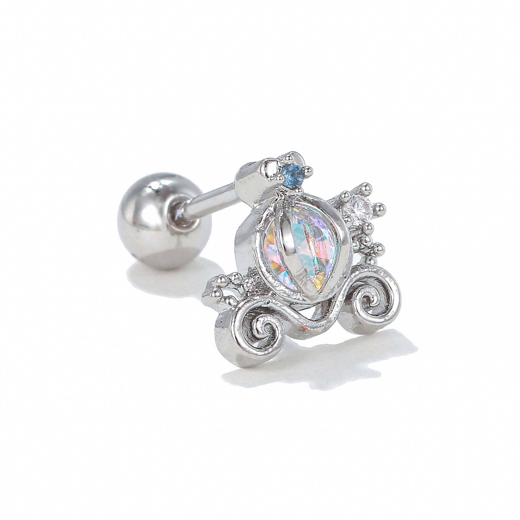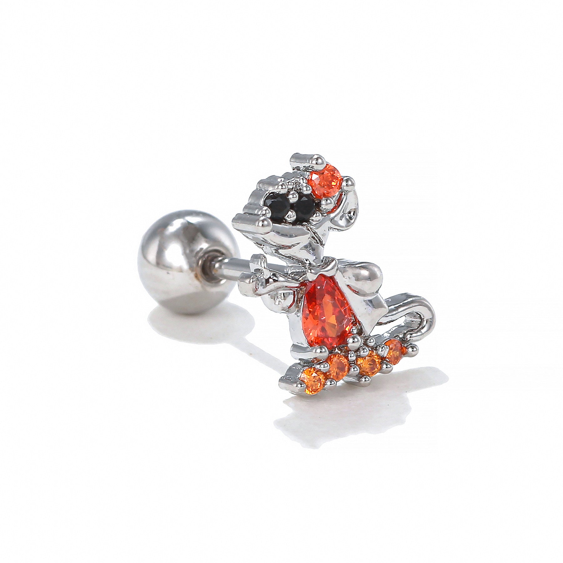 1 Piece Geometric Brass Zircon 18K Gold Plated Animal Ear Studs