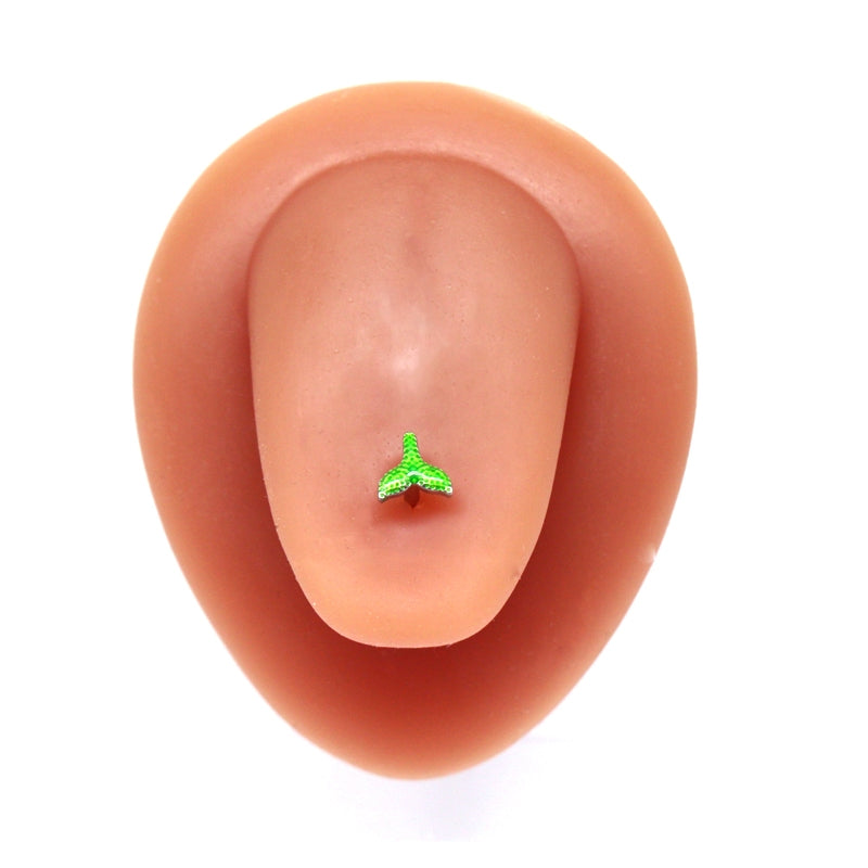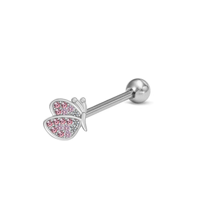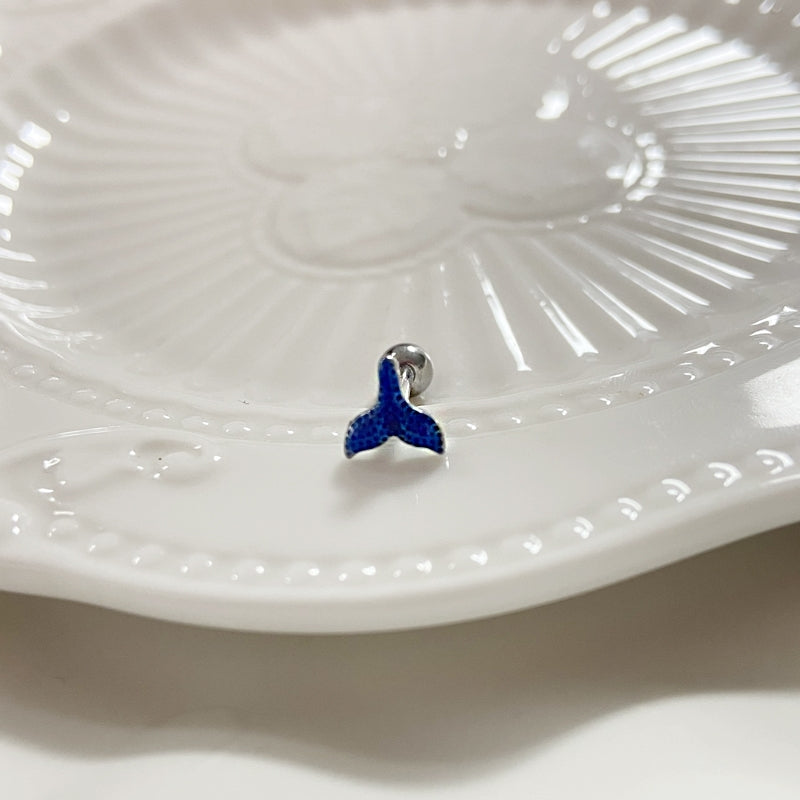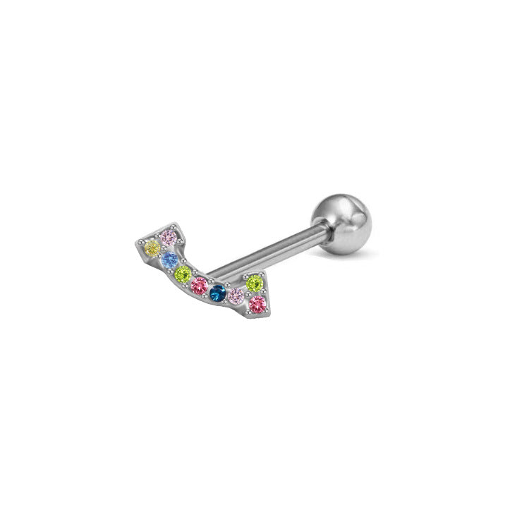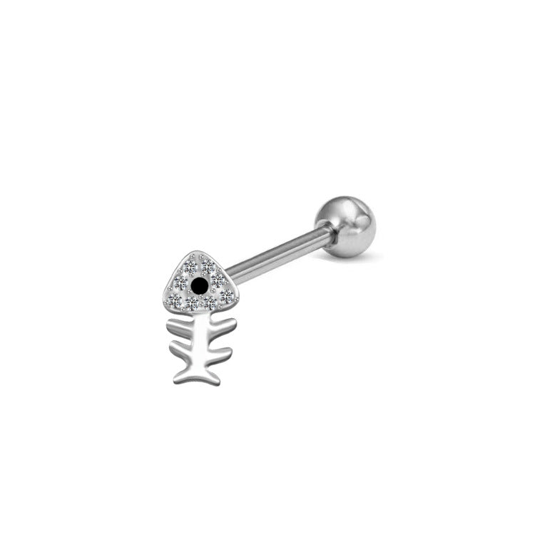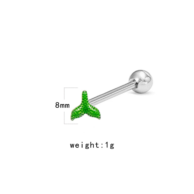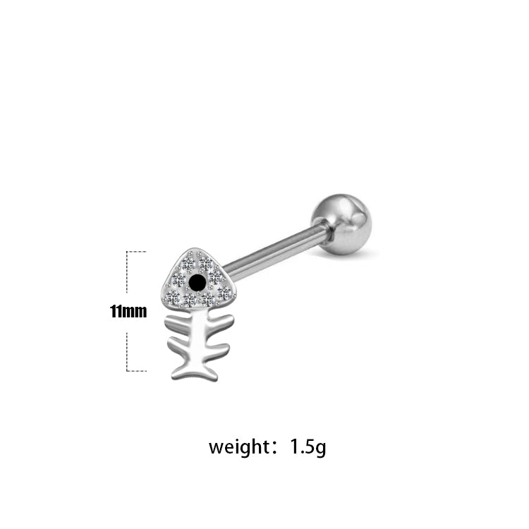 1 Piece Blue Series Stainless Steel Tongue Rings with Animal, Fruit, and Snowflake Designs - Rhinestone Inlay and White Gold Plated
