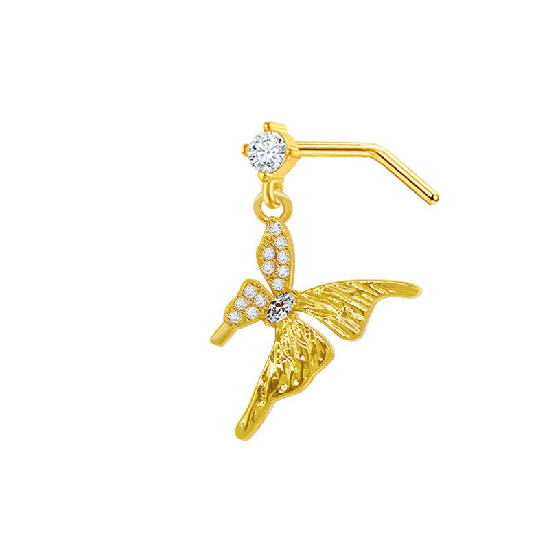Glam Rock Ethnic Style Star Heart Butterfly Nose Rings & Studs with Teardrop Gemstone Pendant, 316 Stainless Steel and Copper Plating, Inlaid Rhinestones Zircon, Gold Plated Piercing Jewelry
