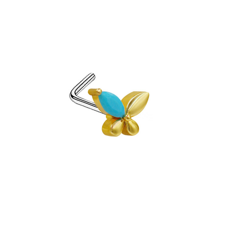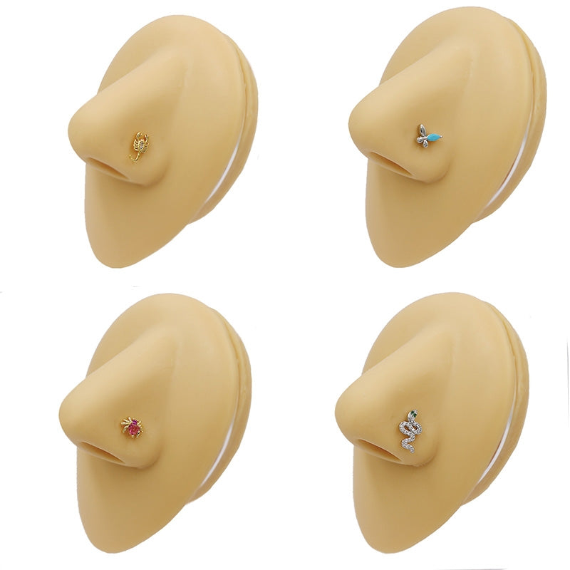Heart & Animal Design Nose Rings & Studs - 316 Stainless Steel, Copper Plating, Inlay Zircon, Gold & White Gold Plated