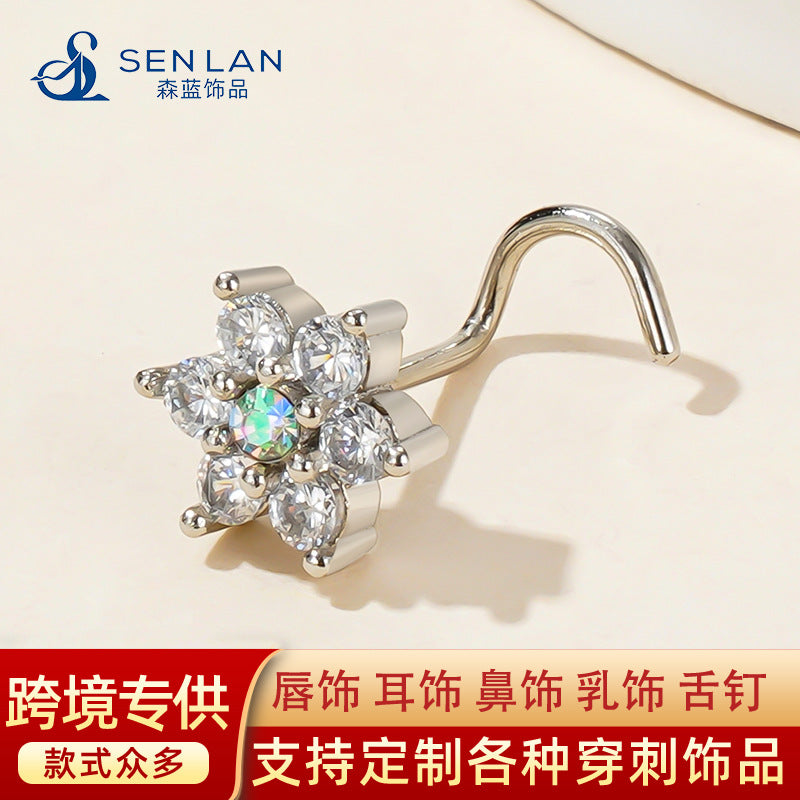 1 Piece Flower Zircon Inlay Stainless Steel Nose Ring & Stud