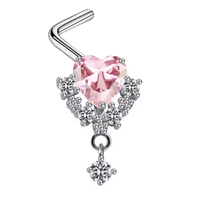 Heart Shape Wing Bow Knot Nose Studs 316 Stainless Steel with Zircon Rhinestones