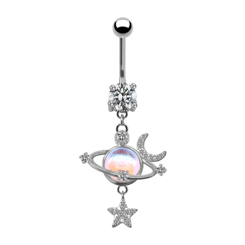 1 Piece Celestial Star Moon Planet Stainless Steel Zircon Belly Ring