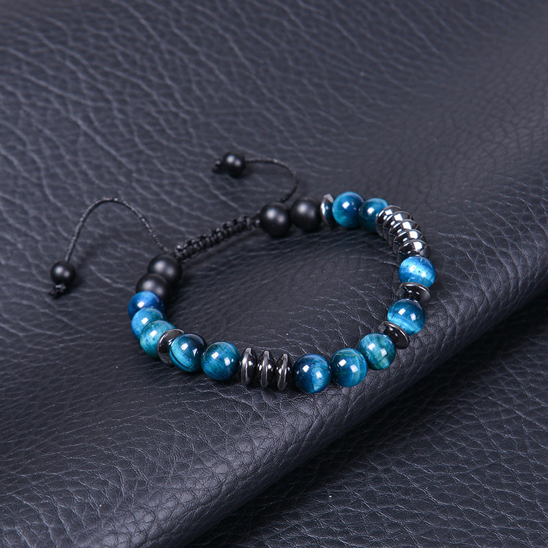 Geometric Natural Stone Tiger Eye Morse Code Bracelet for Men