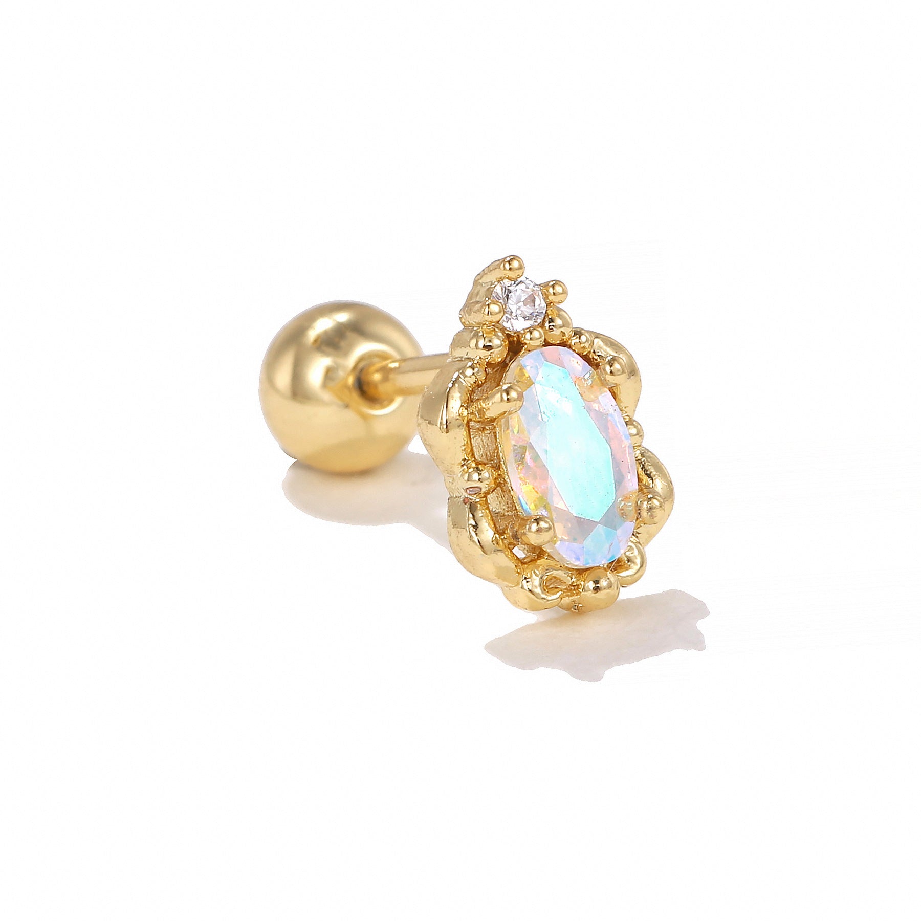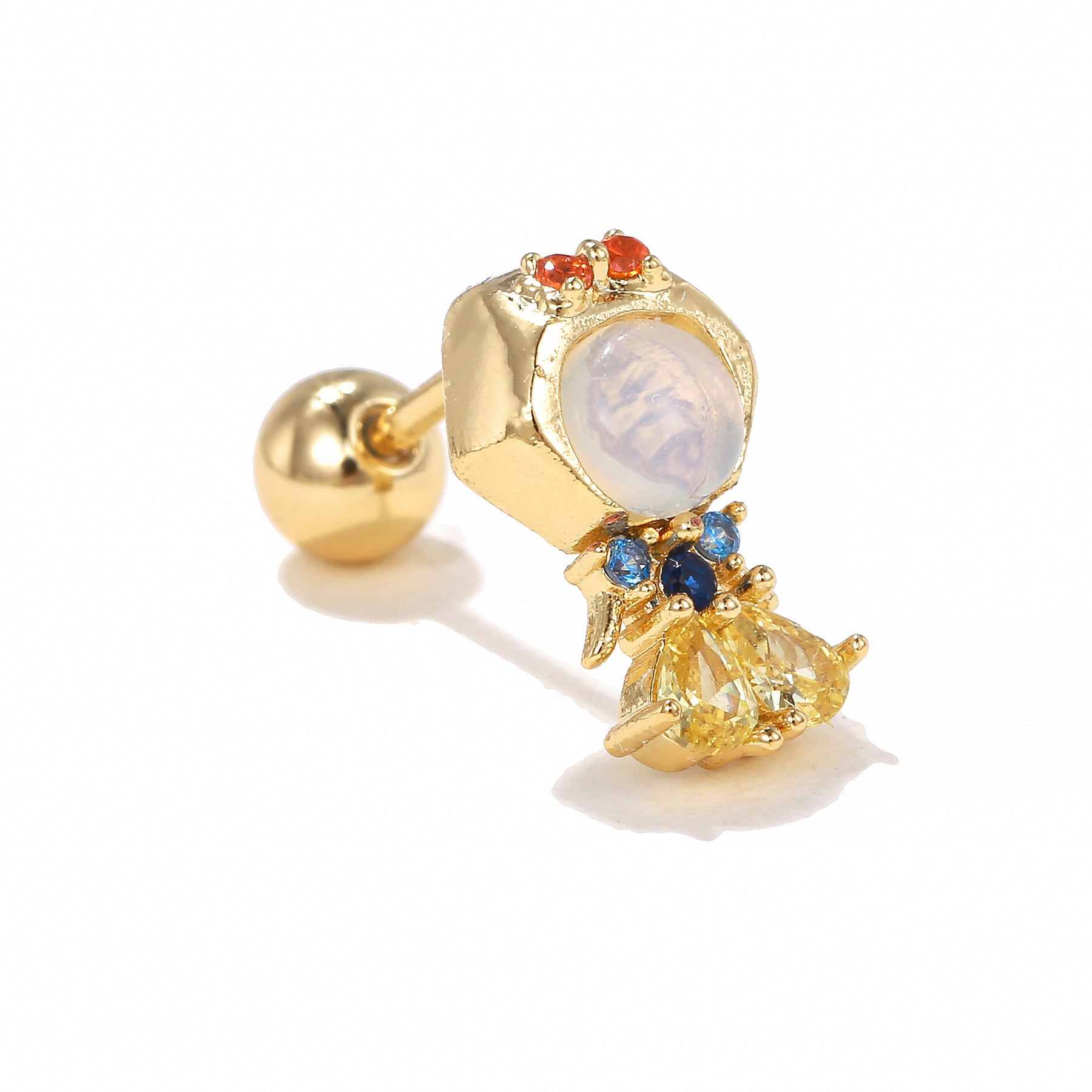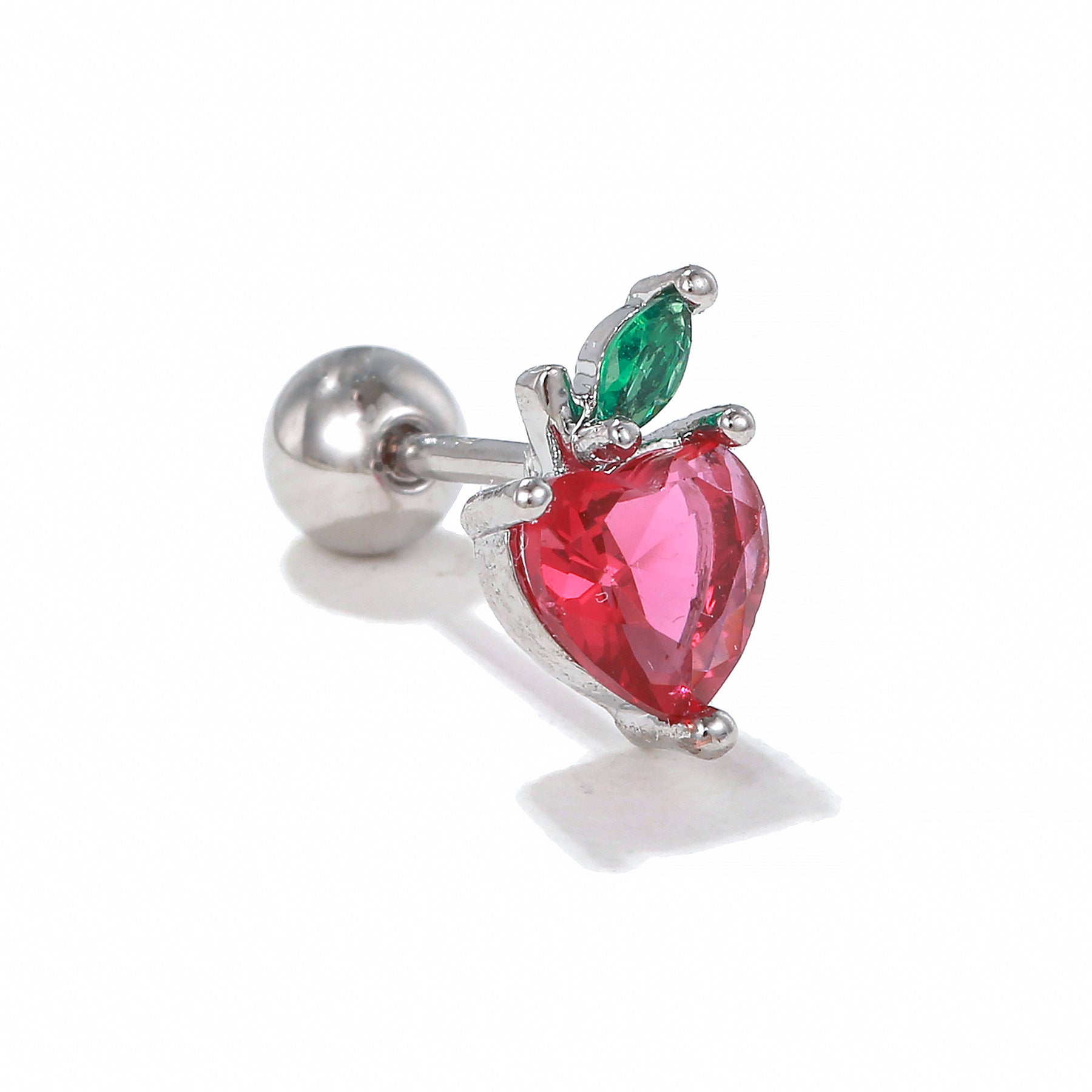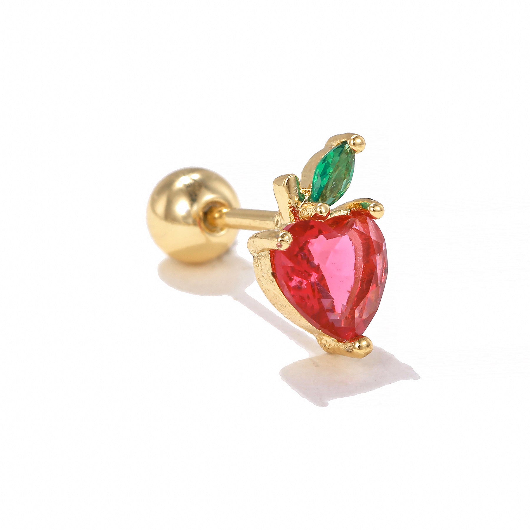 1 Piece Heart Shape Zircon Inlay 18K Gold Plated Ear Studs - Colorful Princess Series Fashion Piercing Jewelry