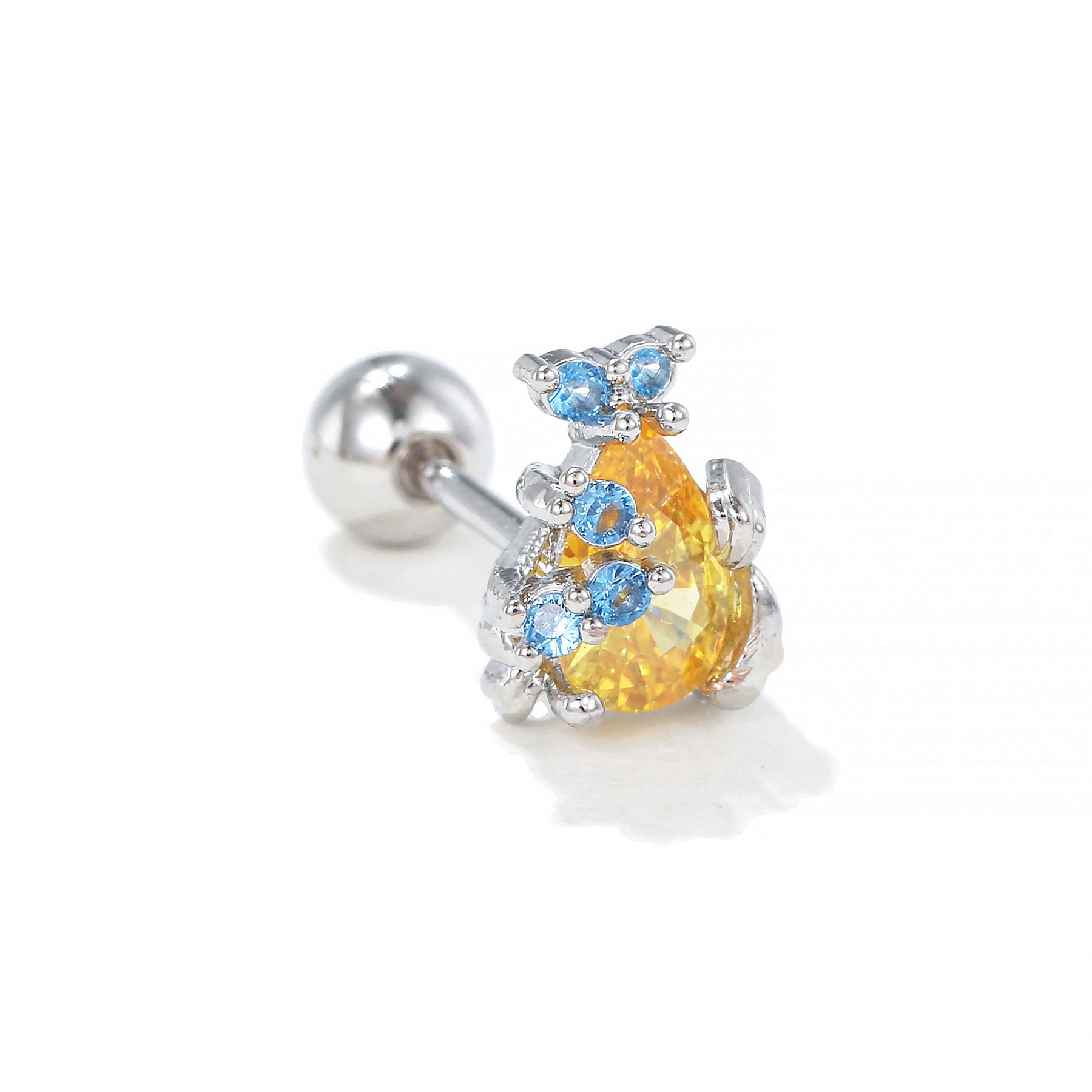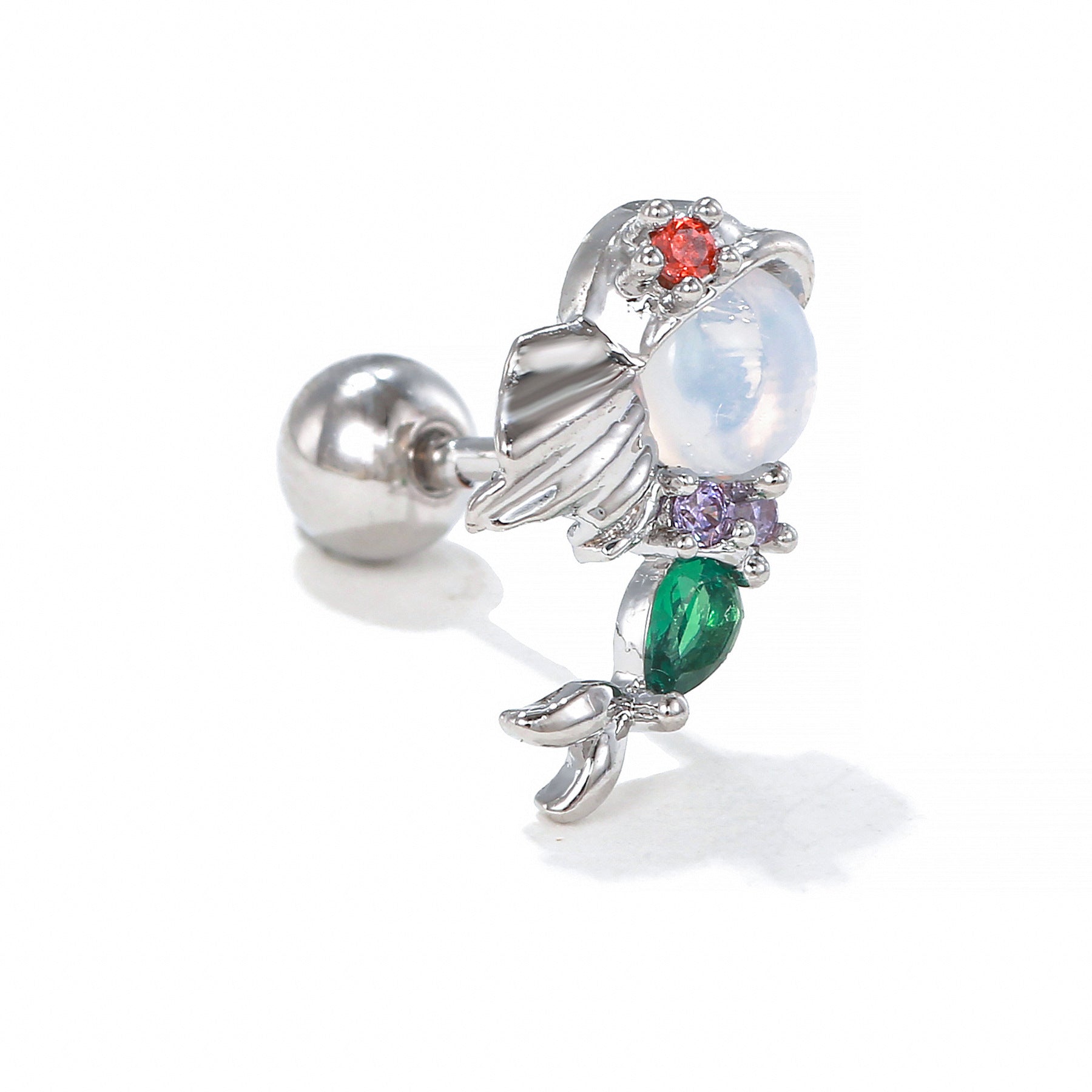 1 Piece Minimalist Brass Zircon Ear Studs with 18K Gold and White Gold Plating