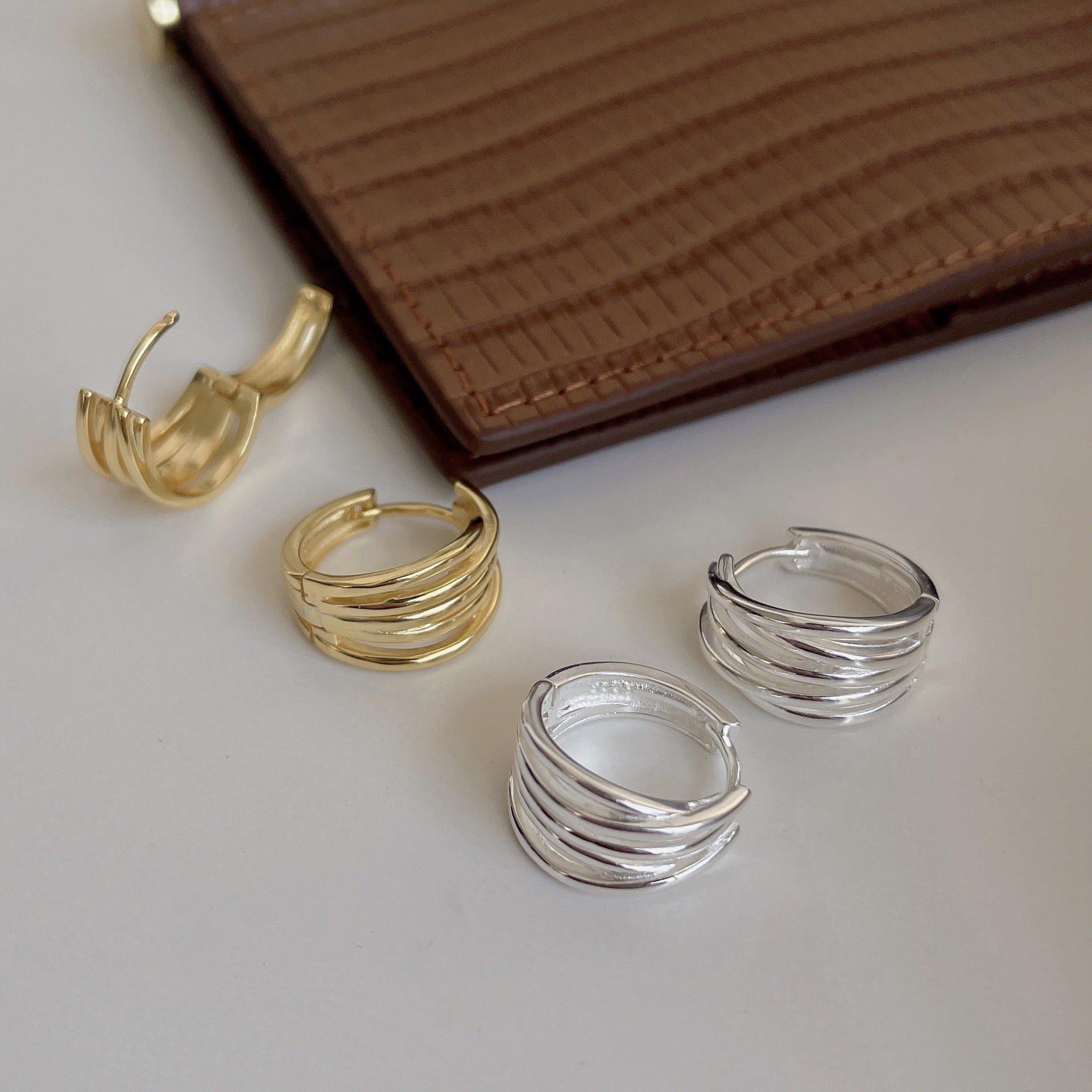 1 Piece Minimalist 18K Gold Plated Open Ring & 925 Sterling Silver Weave Hoop Earrings