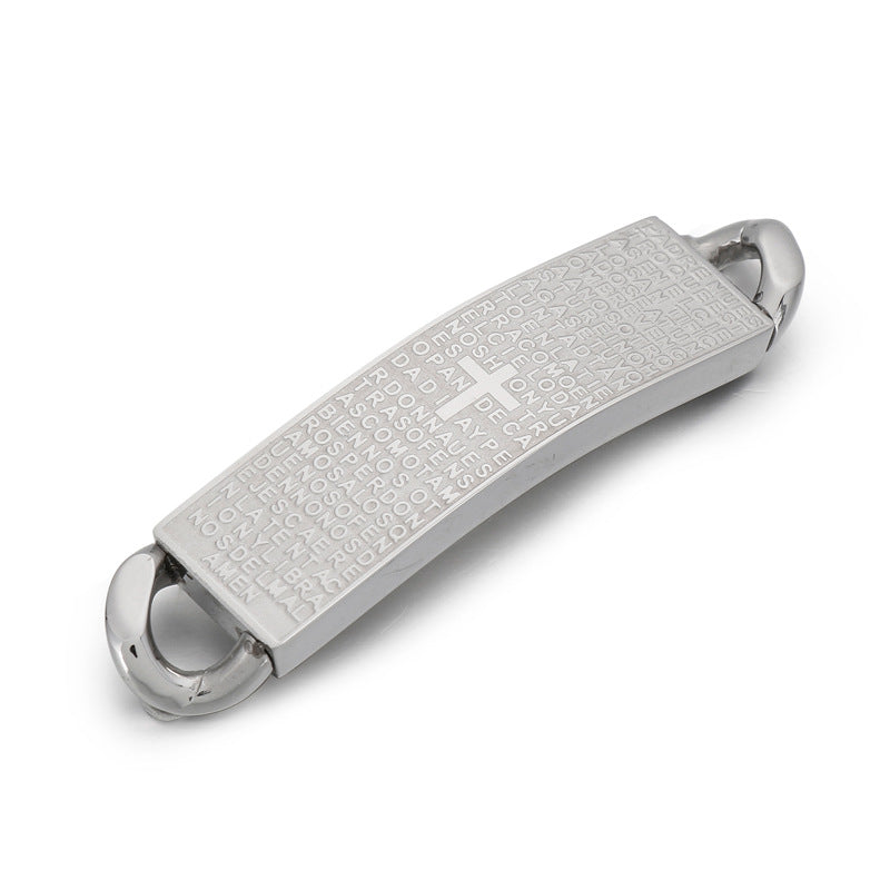Stainless Steel Cross Engraved Letter Pendant Bracelet Accessory