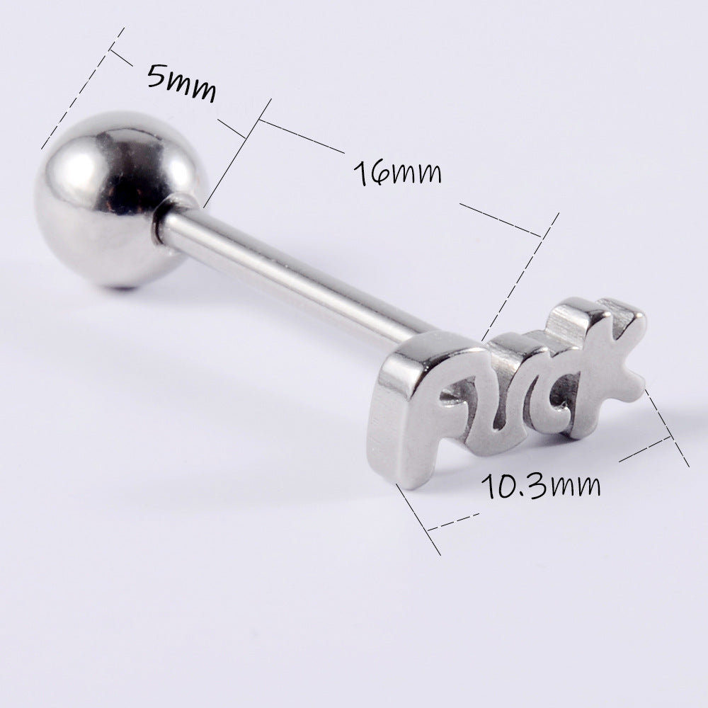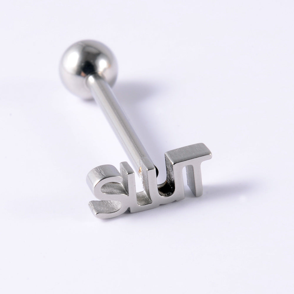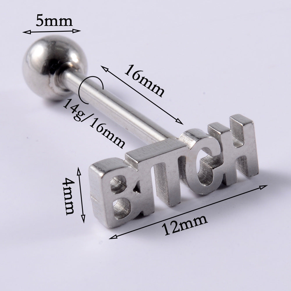 1 Piece Stainless Steel Letter Tongue Ring Punk Style 14G Piercing Jewelry