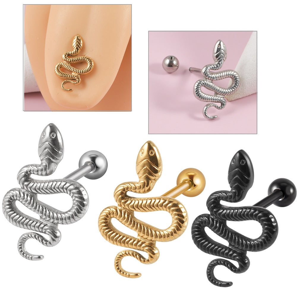 1 Piece Snake Tongue Ring 18K Gold Plated Stainless Steel Streetwear Piercing Jewelry