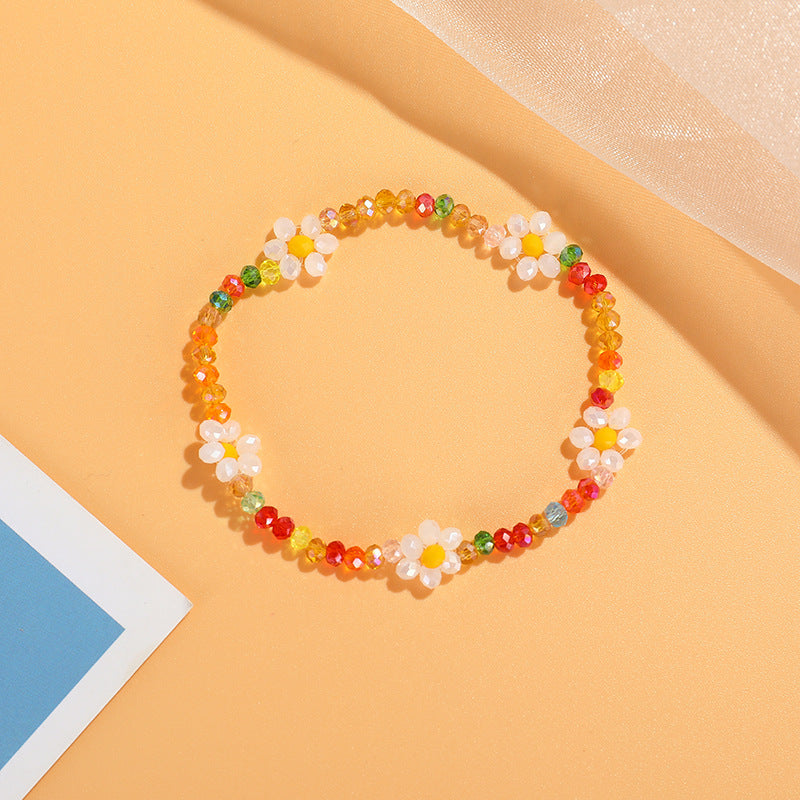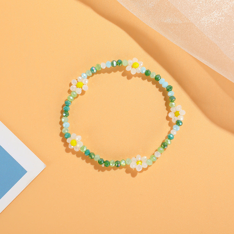 Vacation Floral Crystal Beaded Women's Elastic Bracelet