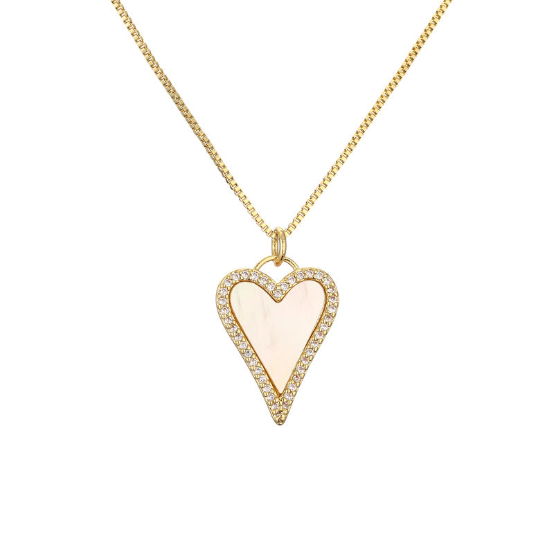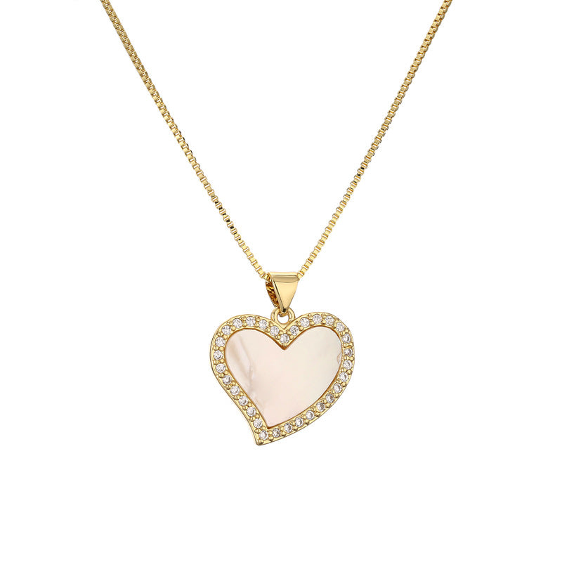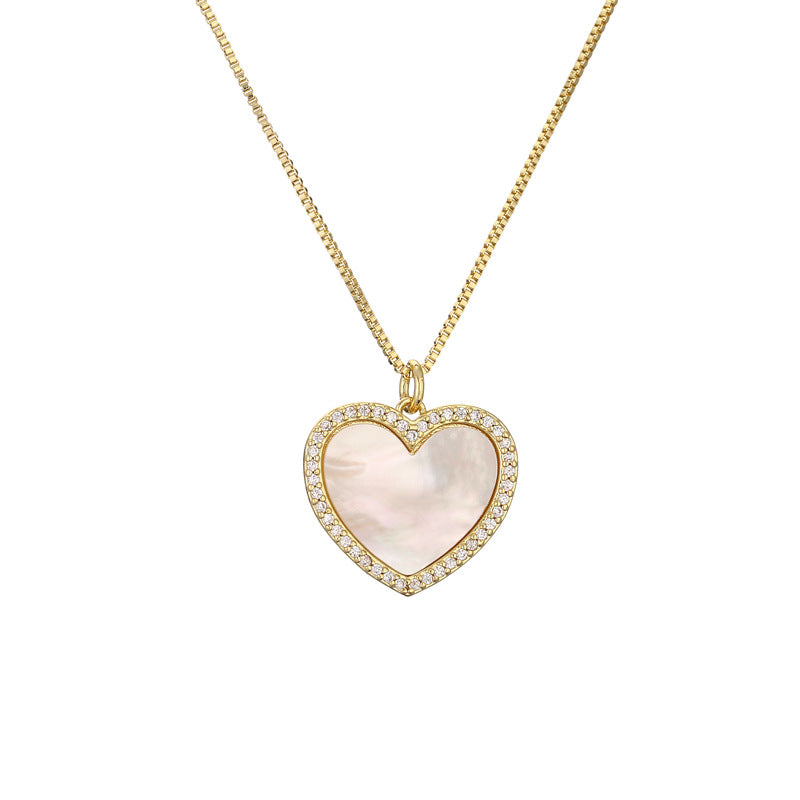 Heart Shape Shell Zircon Pendant Necklace - Minimalist Style
