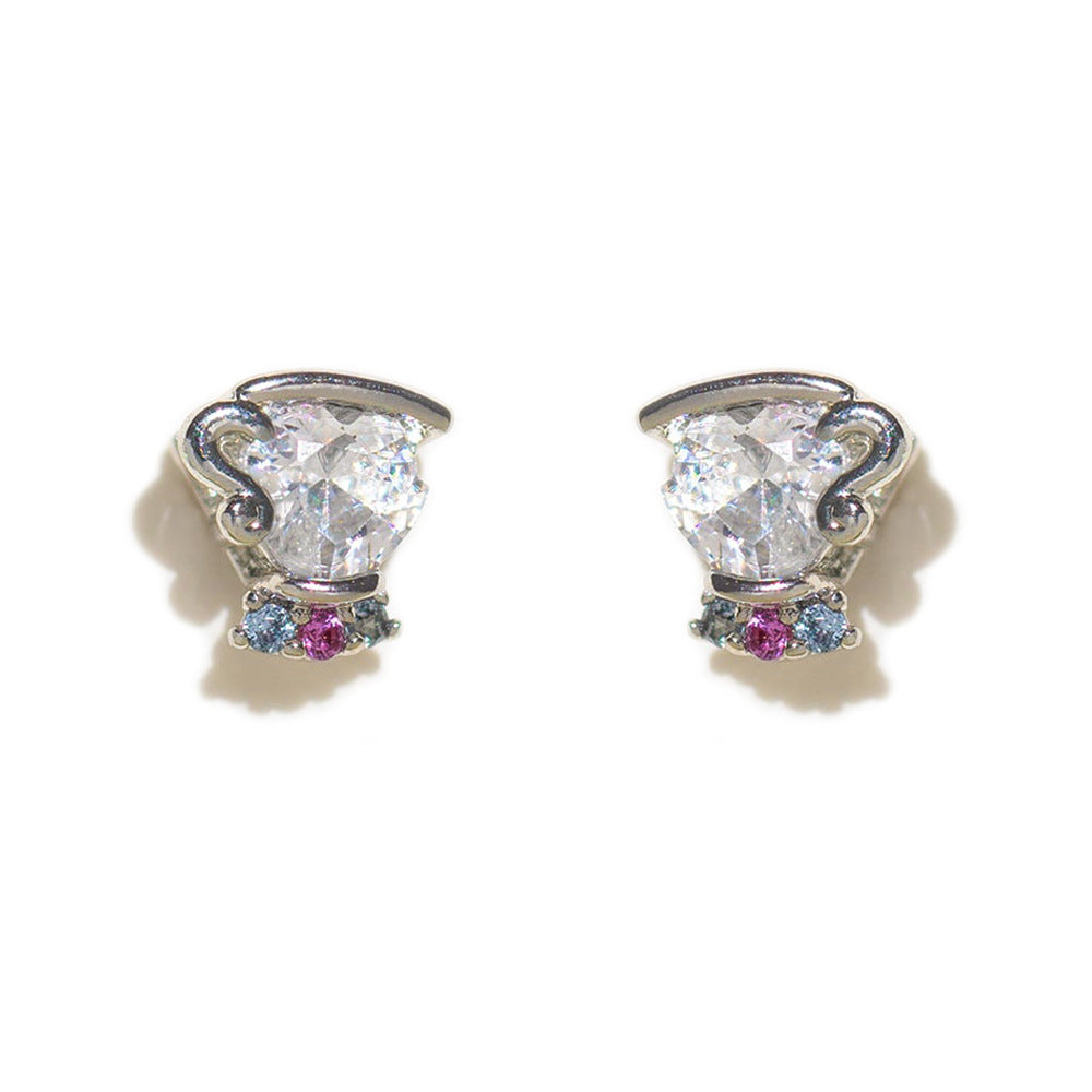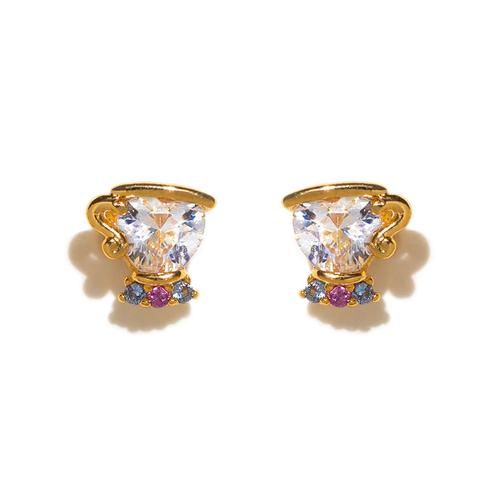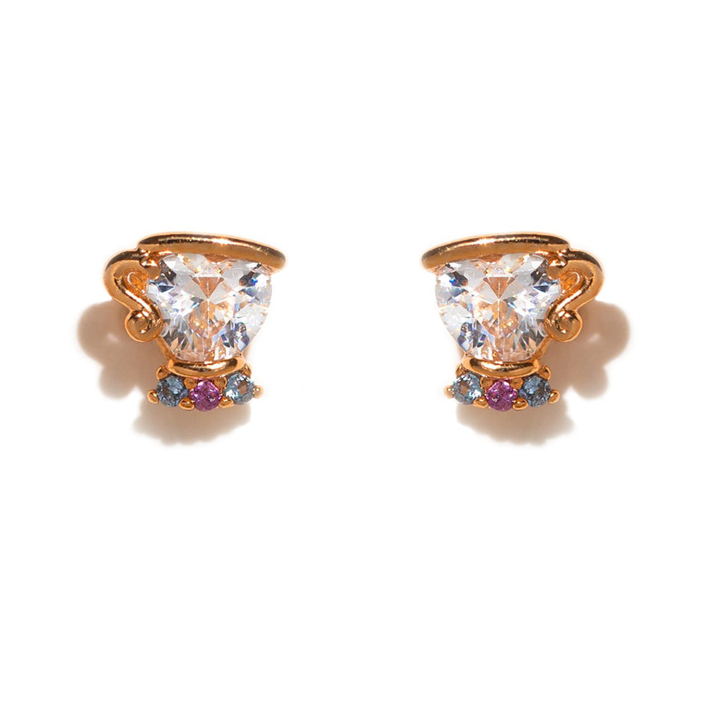 1 Set Artistic Geometric Candle and Cartoon Cup 18K Rose Gold Plated Zircon Inlay Ear Studs