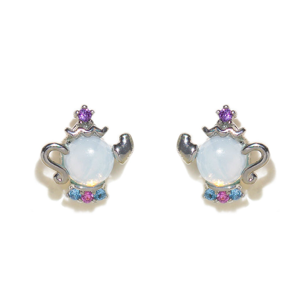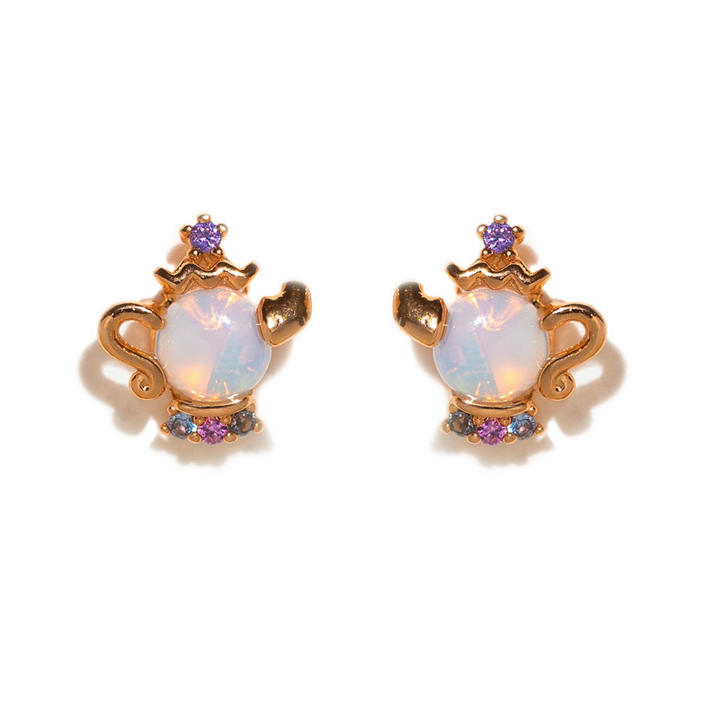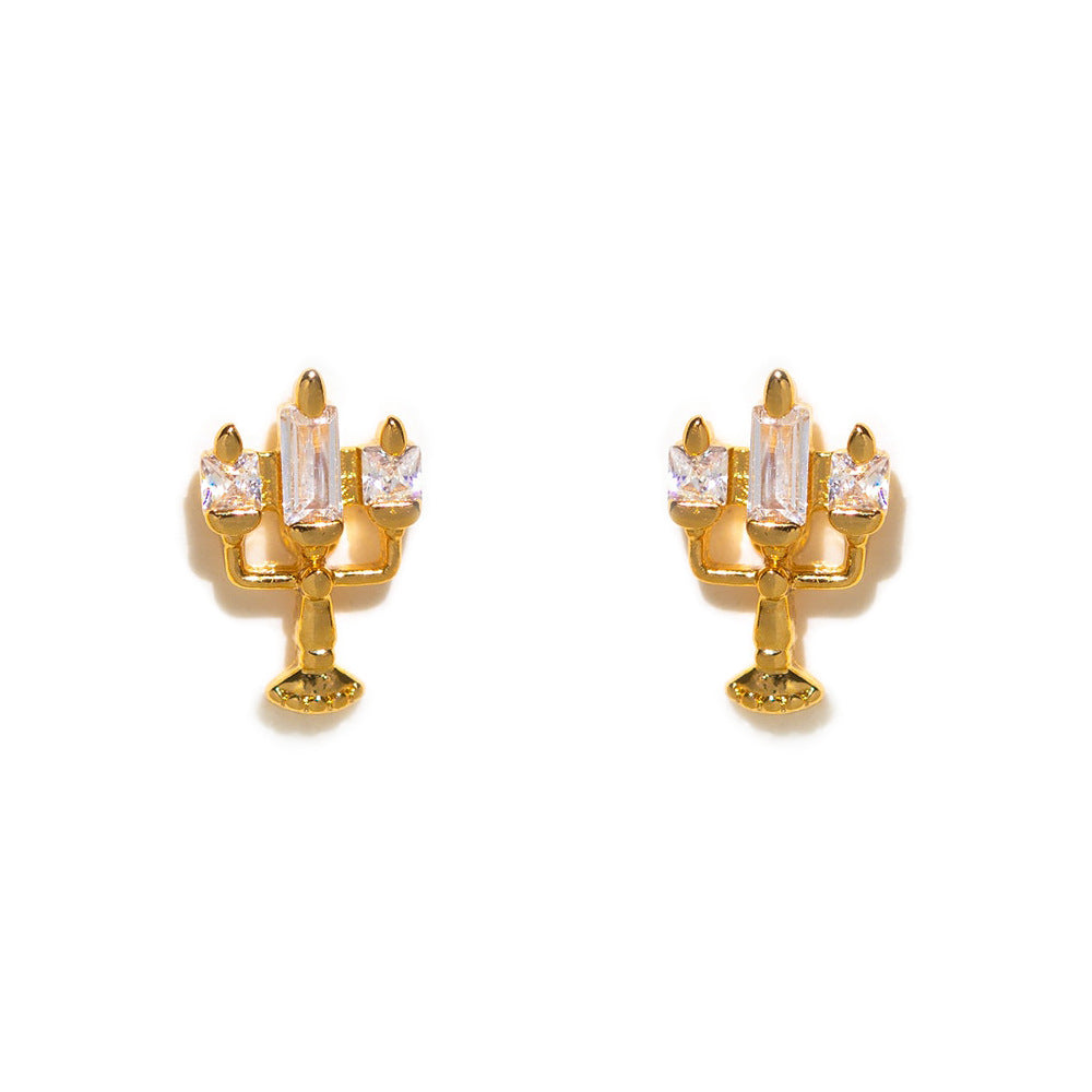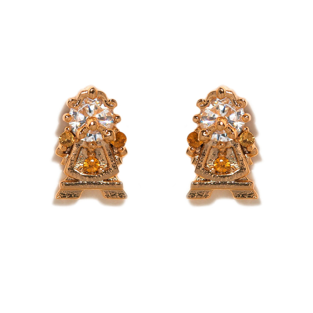 1 Set Artistic Geometric Candle and Cartoon Cup 18K Rose Gold Plated Zircon Inlay Ear Studs