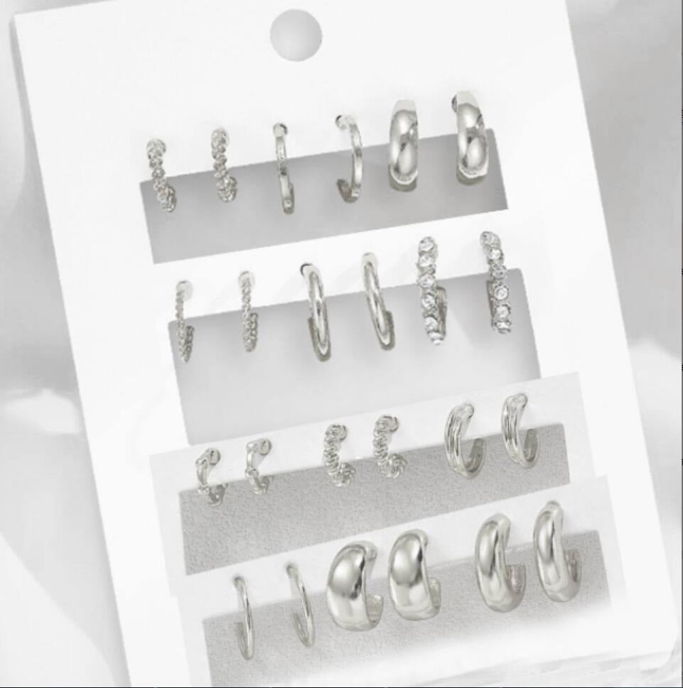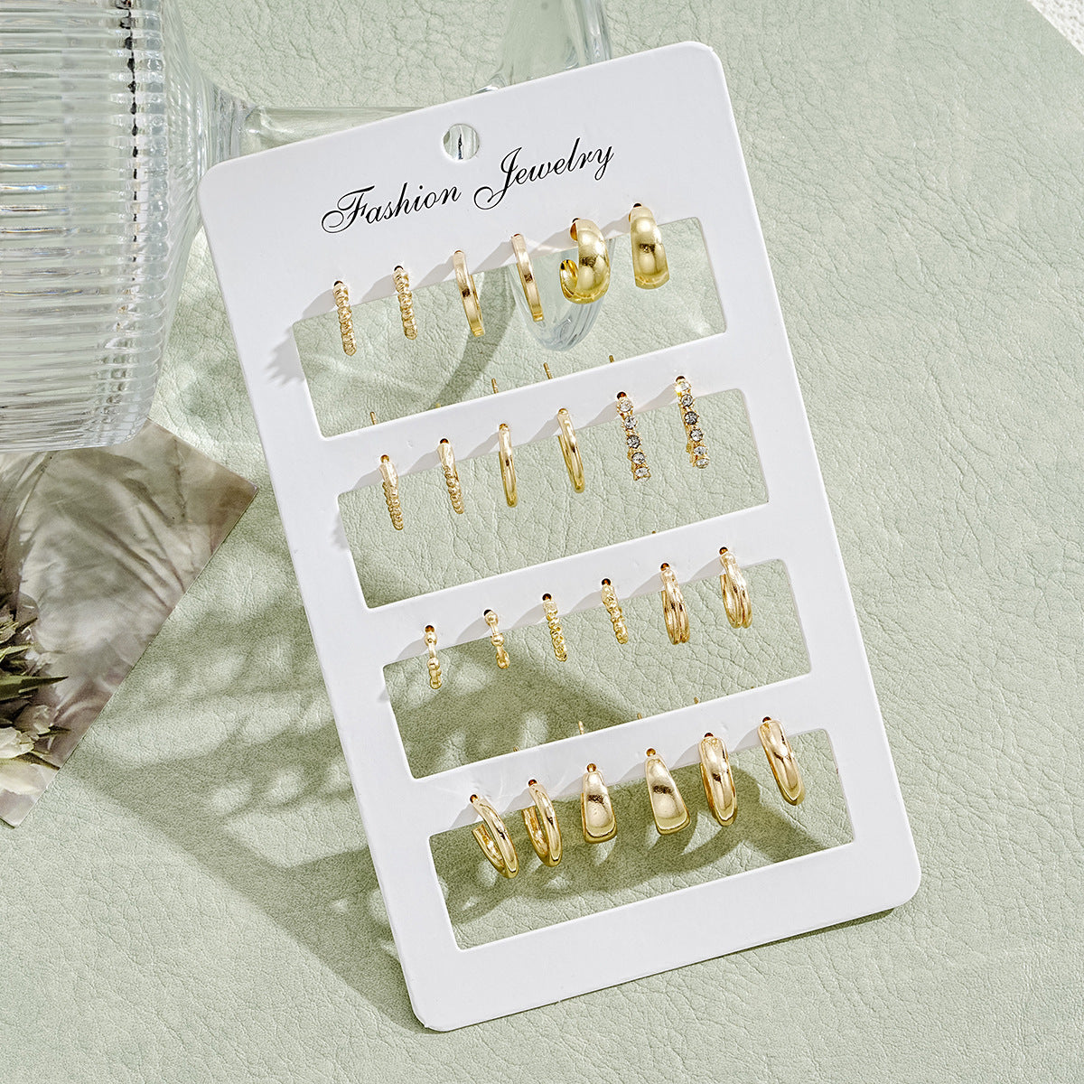 Casual C Shape Rhinestone Inlay Alloy Ear Studs Set - 12 Pieces Vintage Style