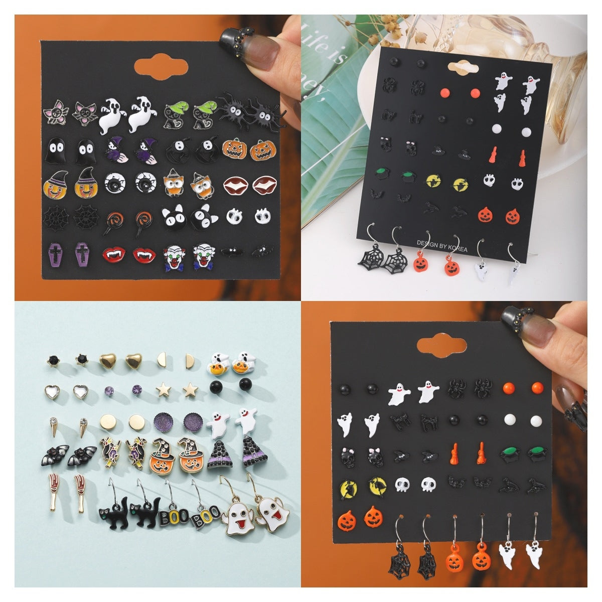Halloween Pumpkin and Skull Cartoon Stud Earrings Set - 20 Pairs