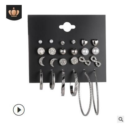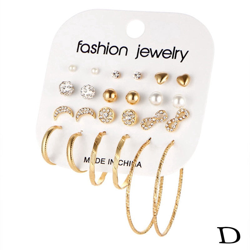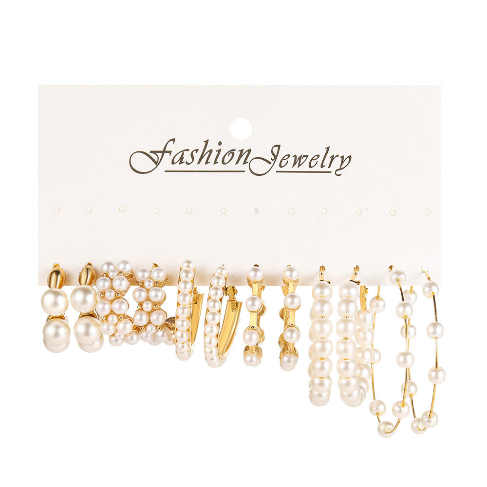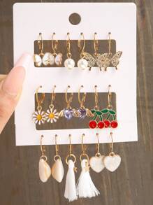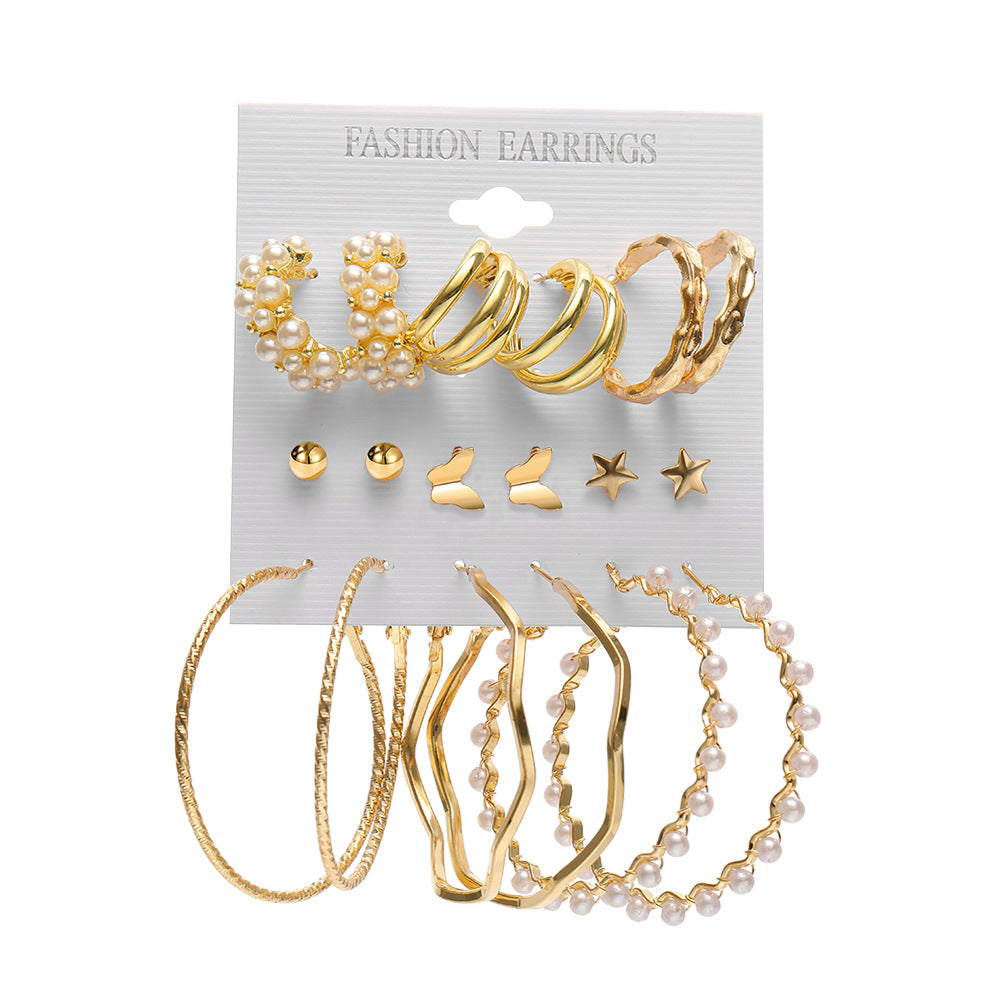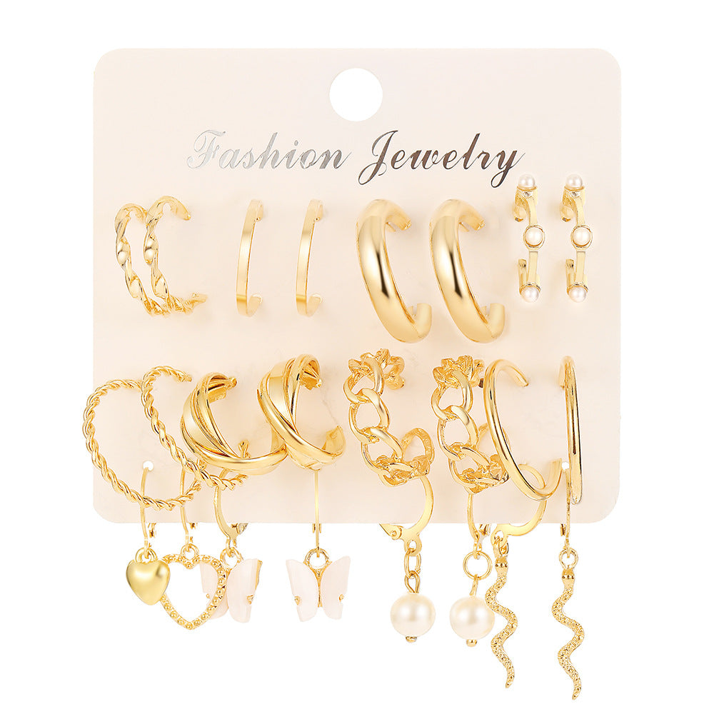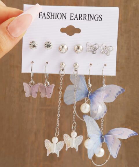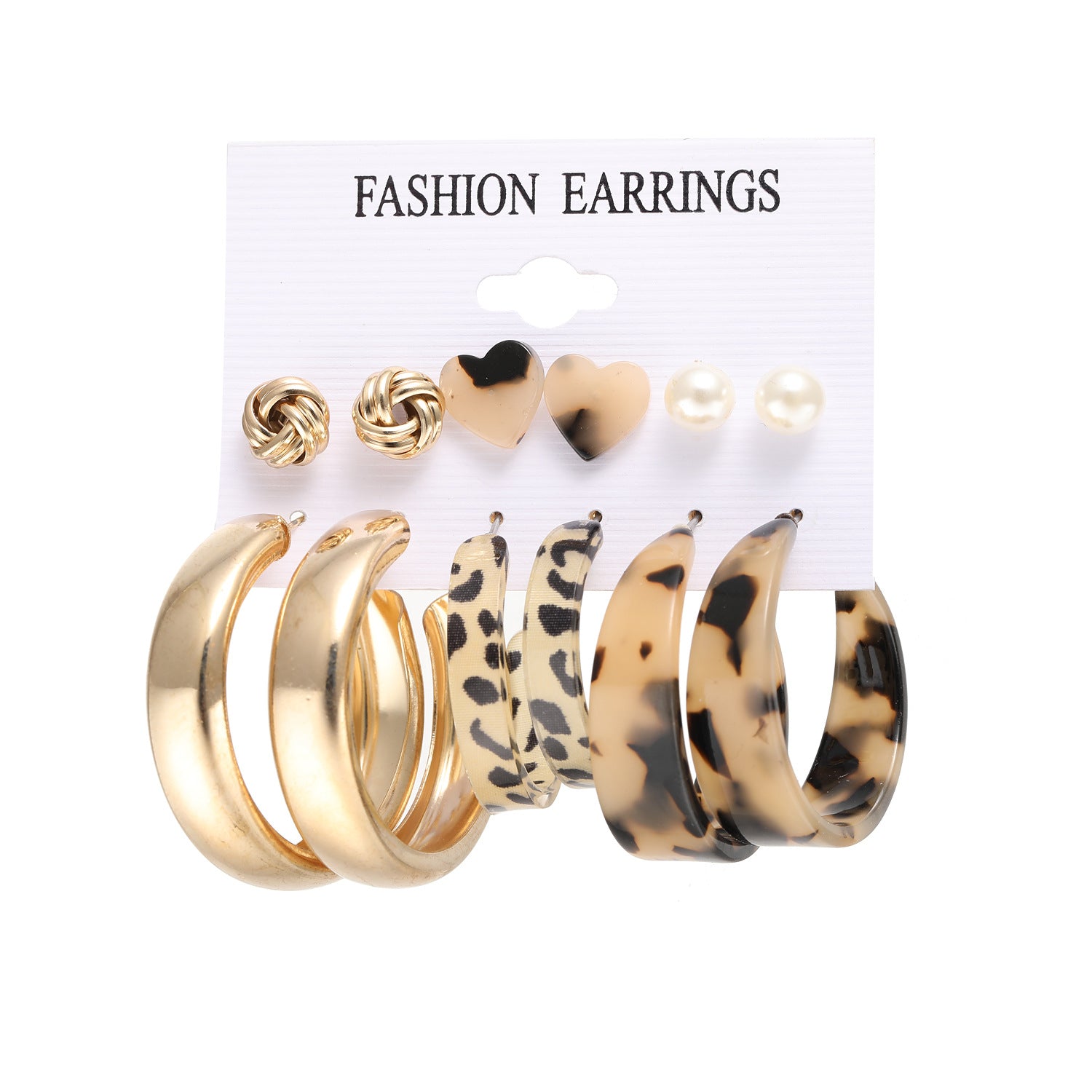 Elegant Geometric Butterfly and Leopard Print Pearl Earring Set - 6 Pairs