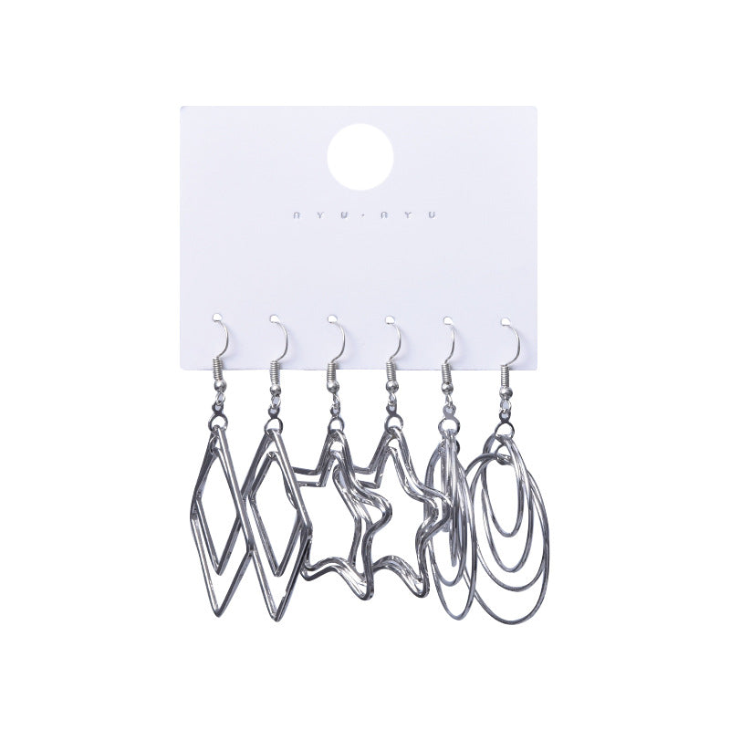 Elegant Geometric Alloy Drop Earrings Set - Vintage Style