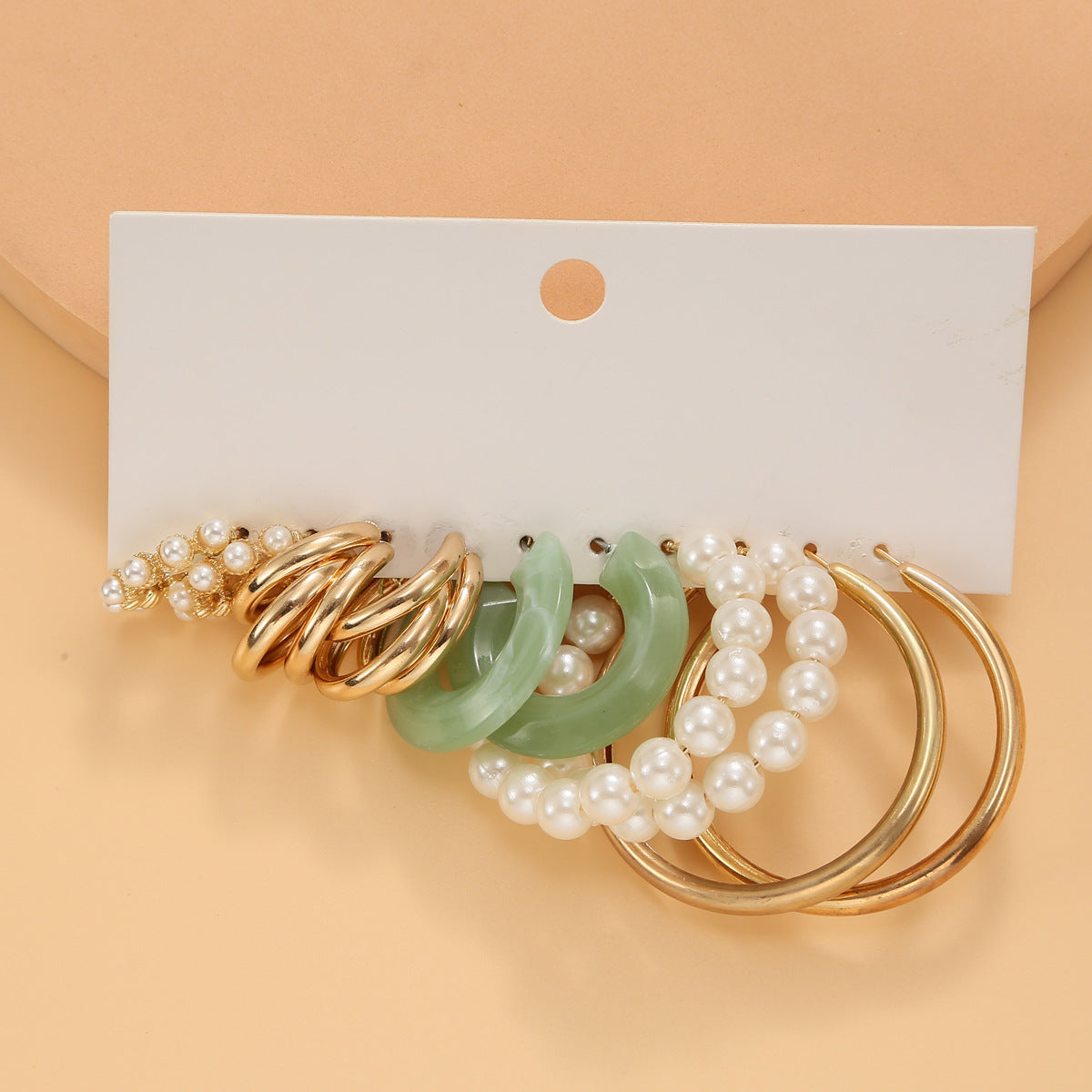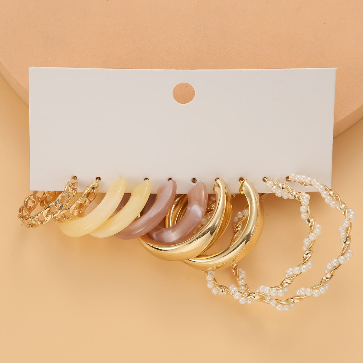 1 Set Geometric Acrylic Alloy Earrings Set with Pearl Accents