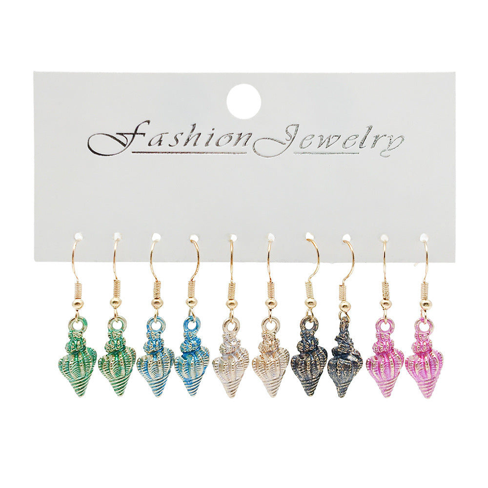 Marine Style Conch Enamel Zinc Alloy Drop Earrings Set