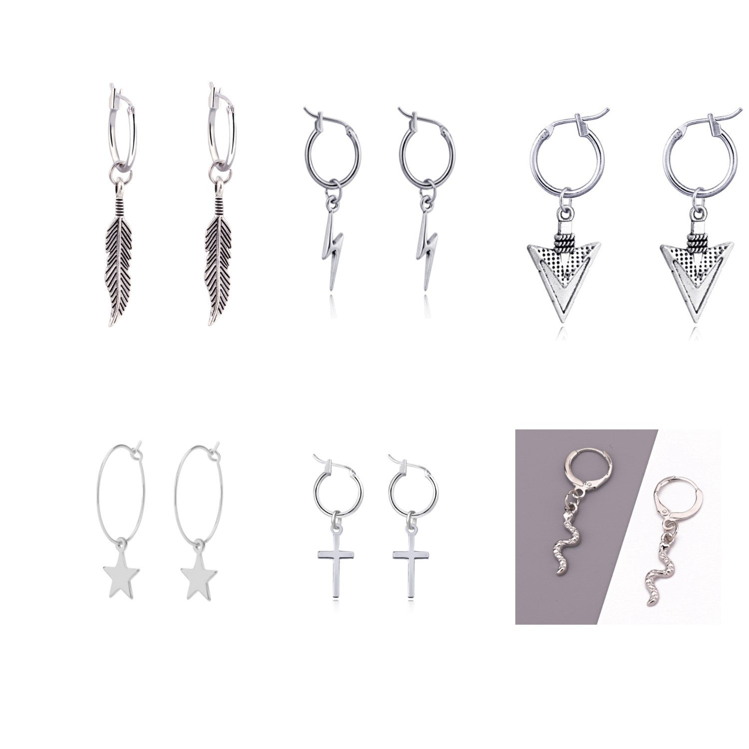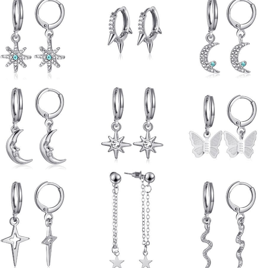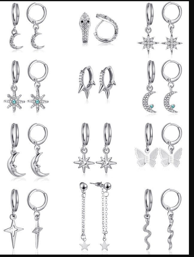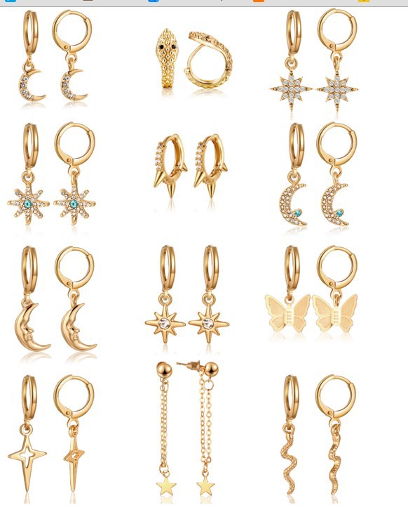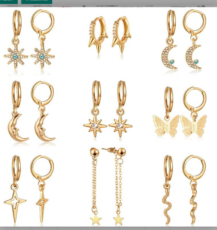 Retro Geometric Star and Moon Alloy Zircon Drop Earrings Set