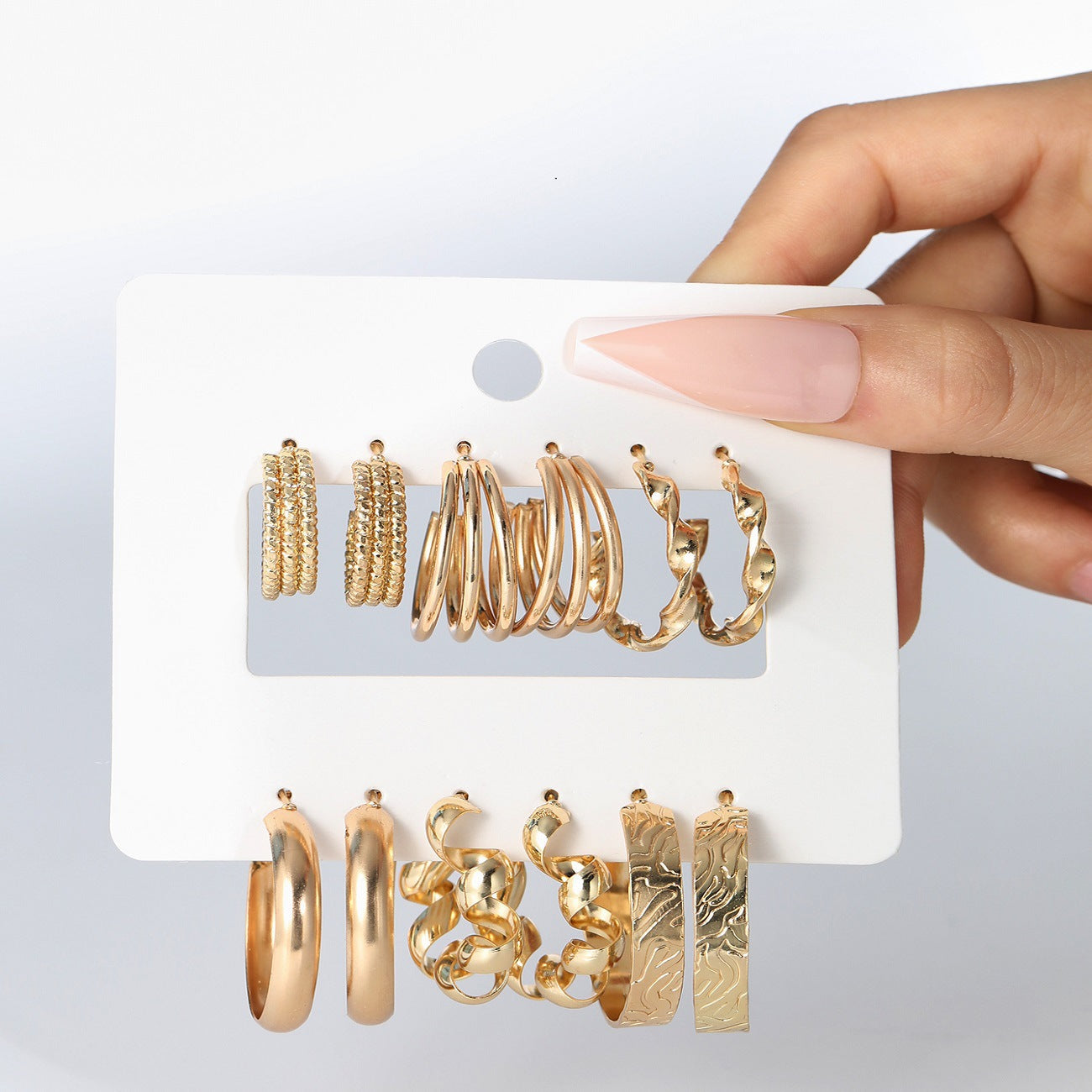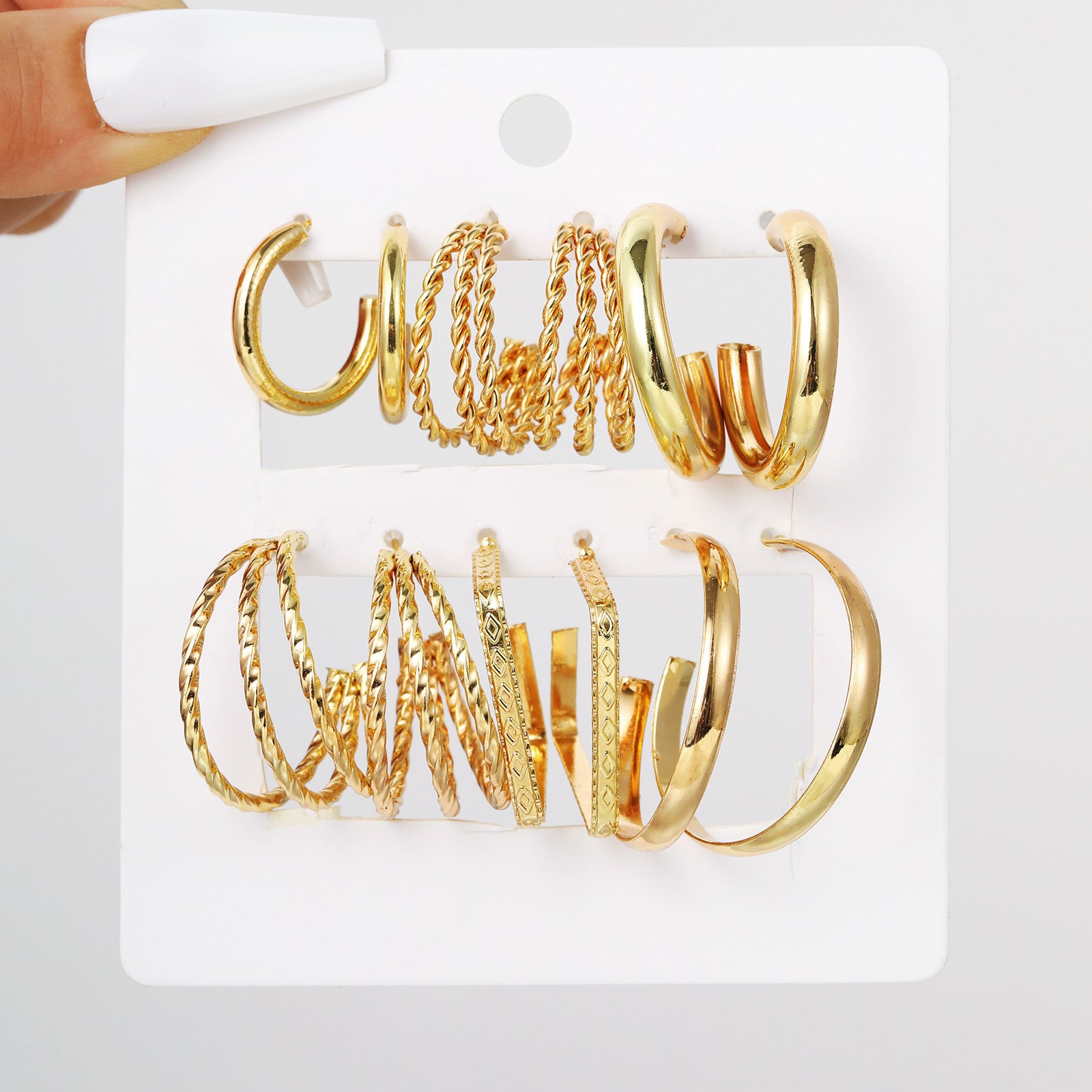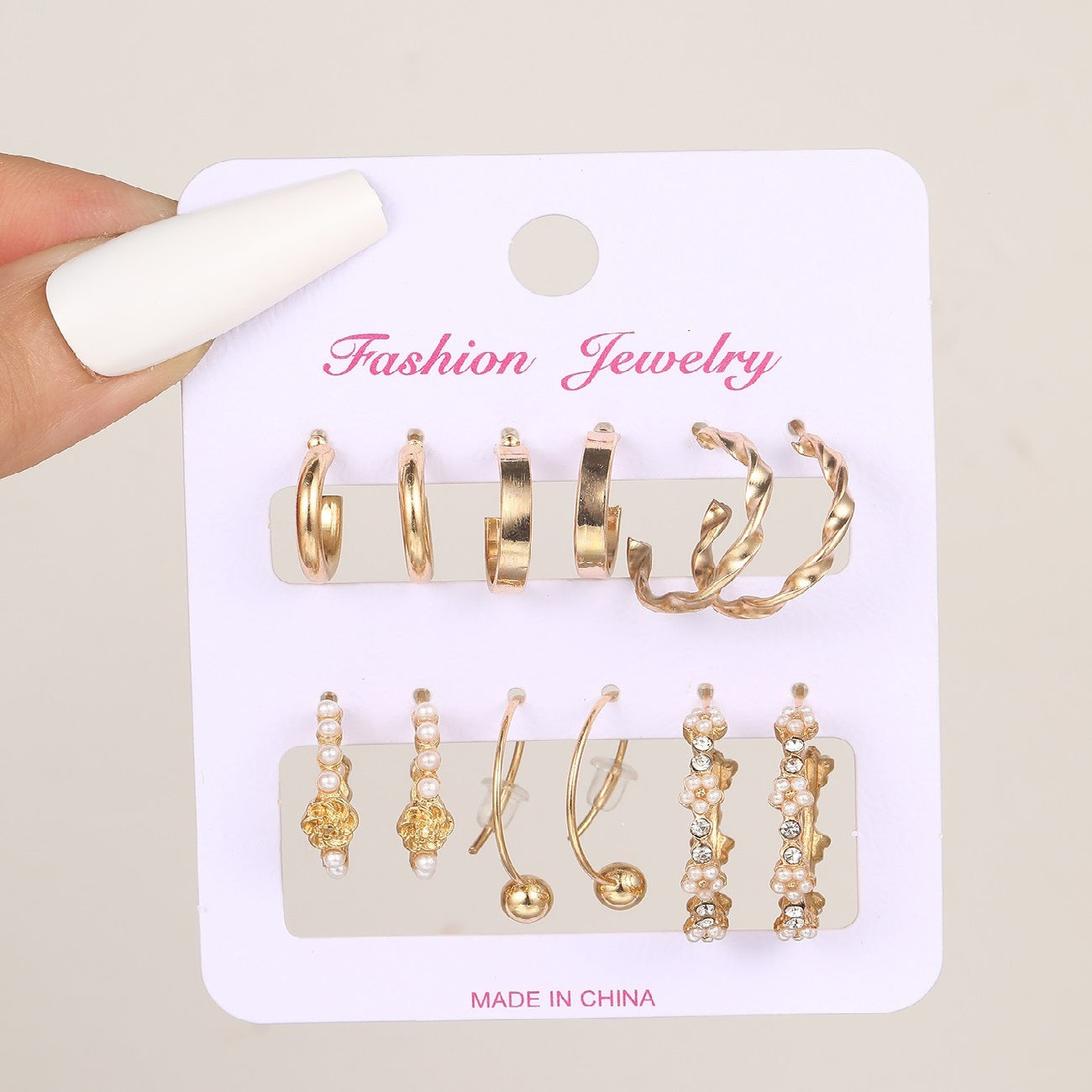 Set of 6 Minimalist Circle and Letter C Alloy Earrings with Rhinestones and Pearls