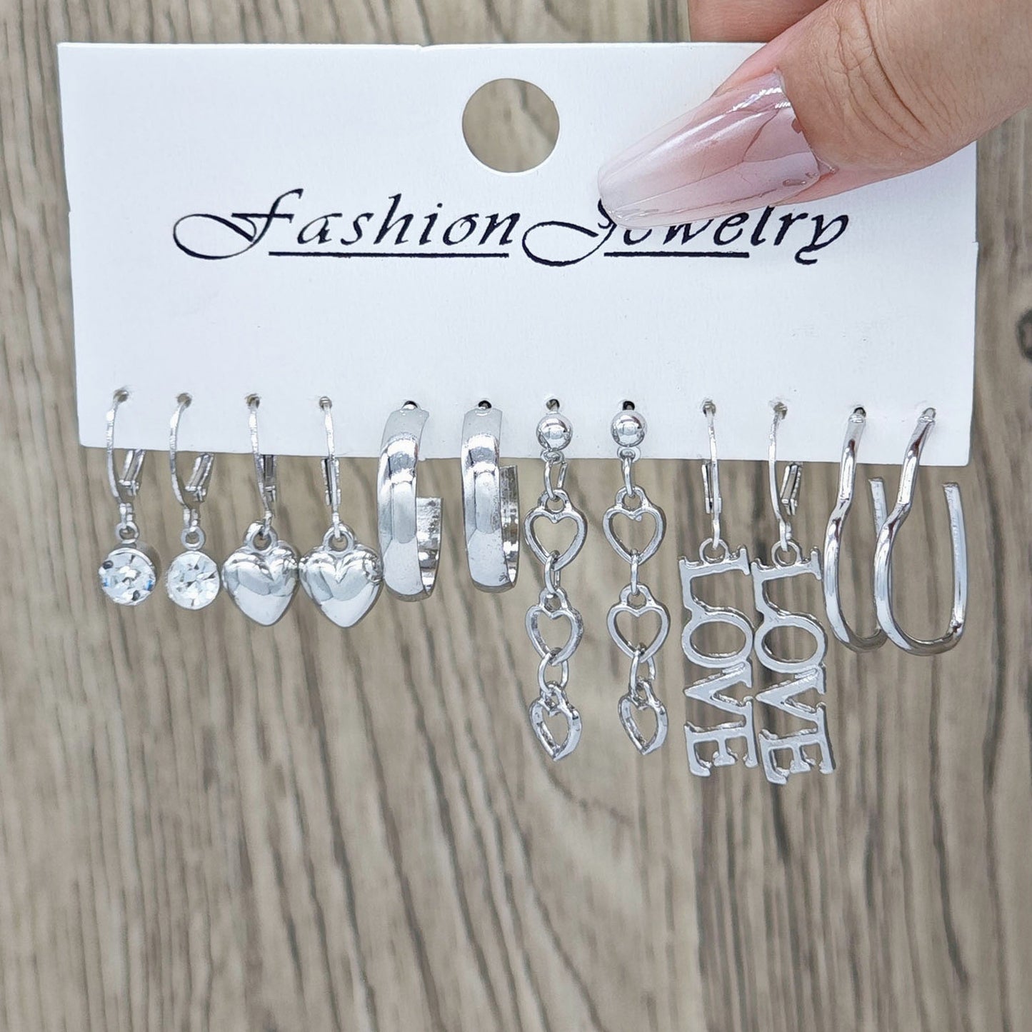 Simple Style Color Block Alloy Drop Earrings Set - Silver Chain Hoop Earrings for Women
