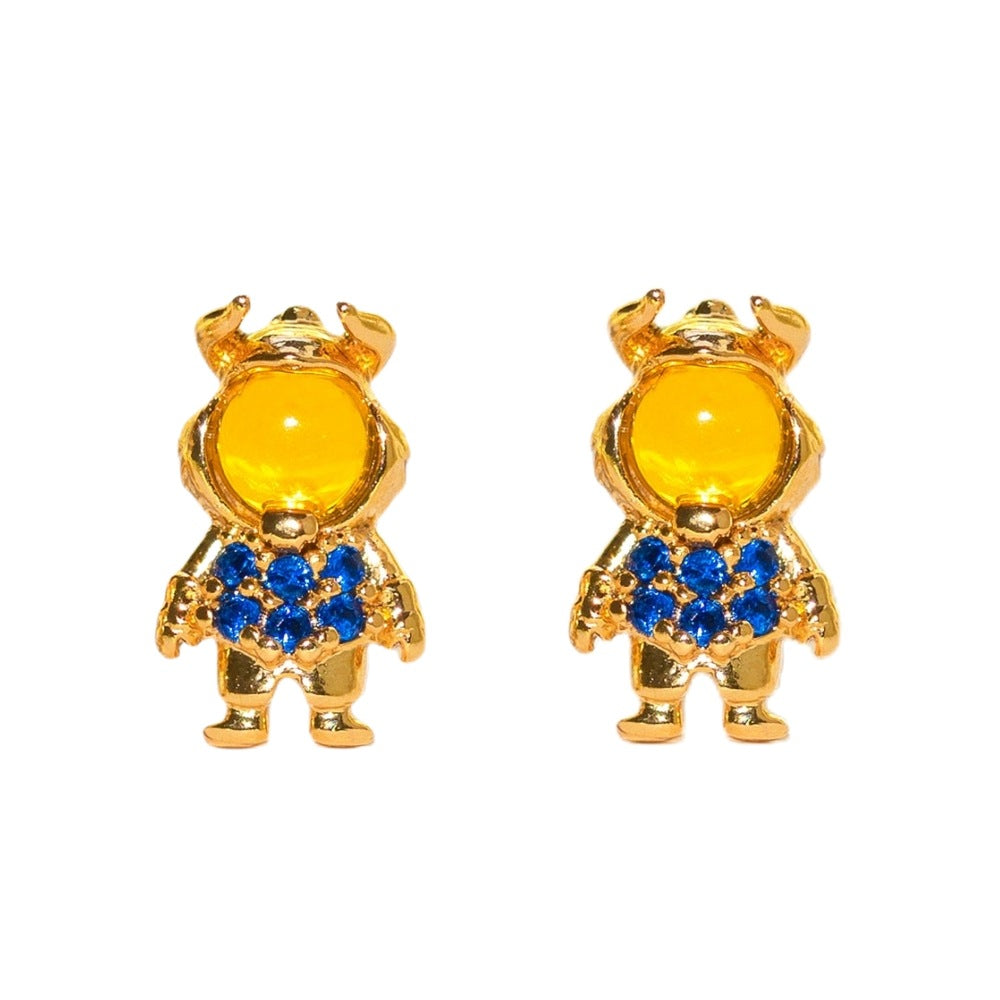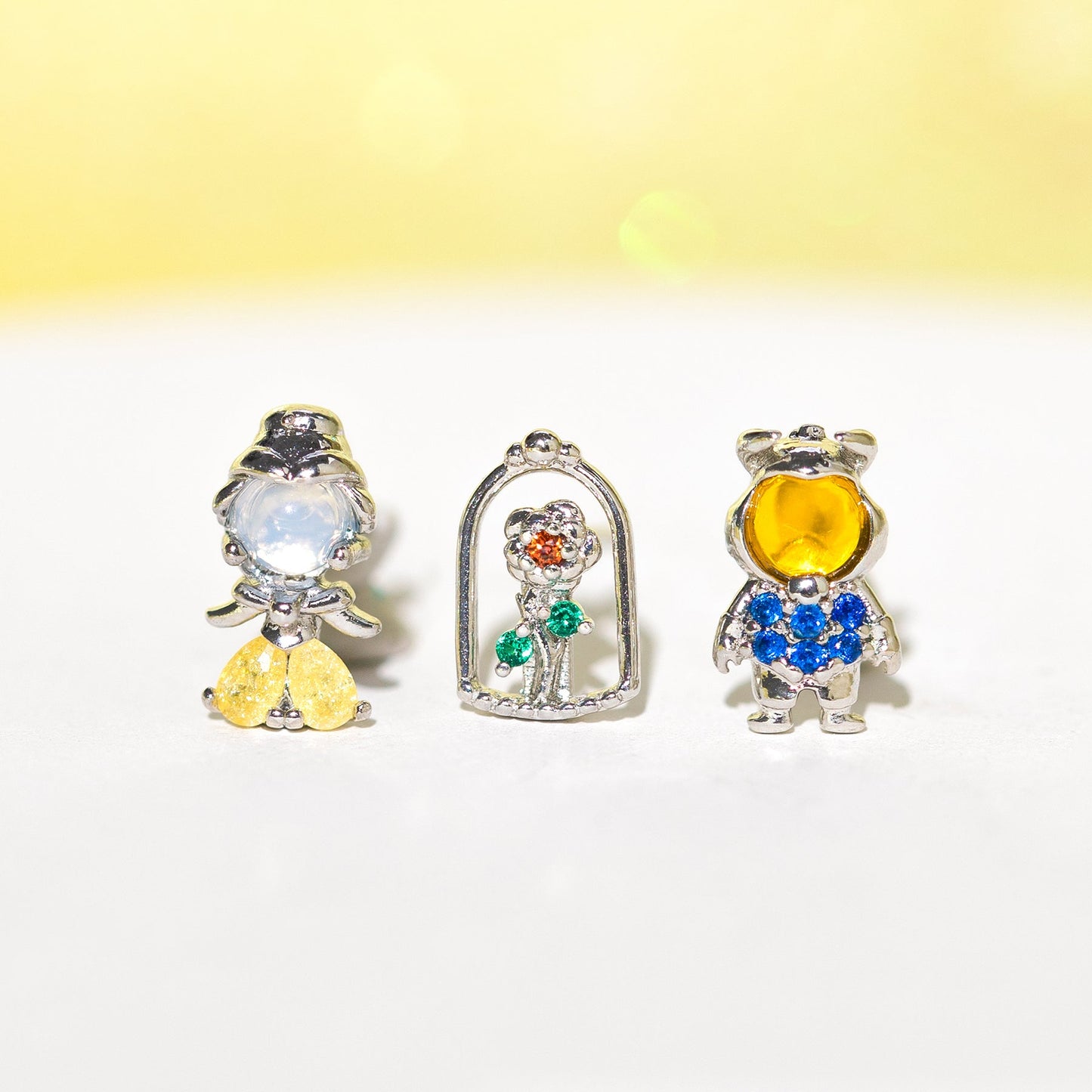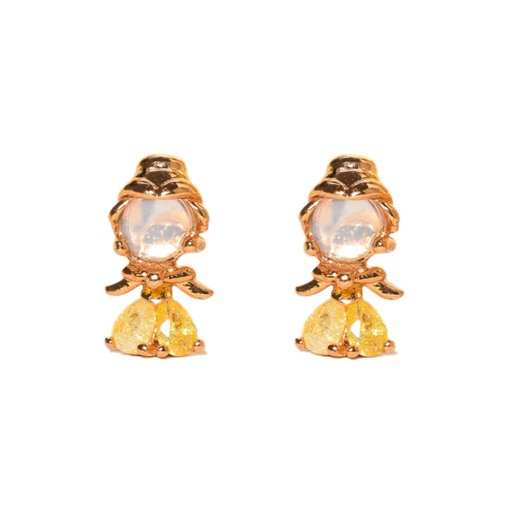 1 Set Sweet Cartoon Design 18K Gold Plated Brass Zircon Ear Studs Trio Set