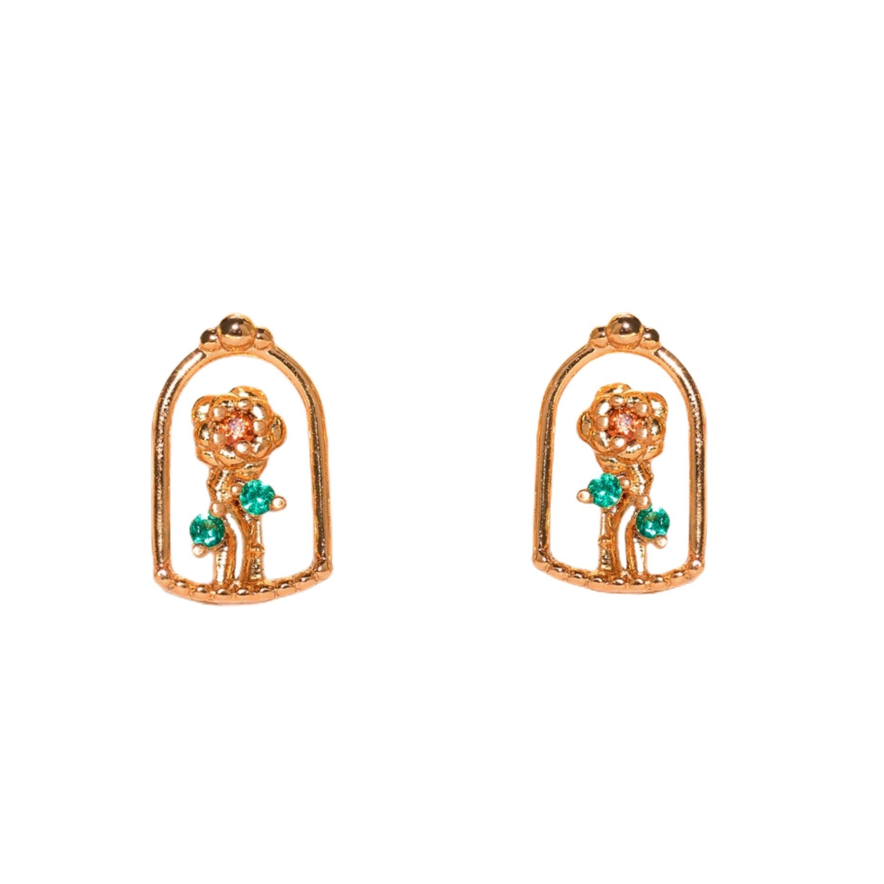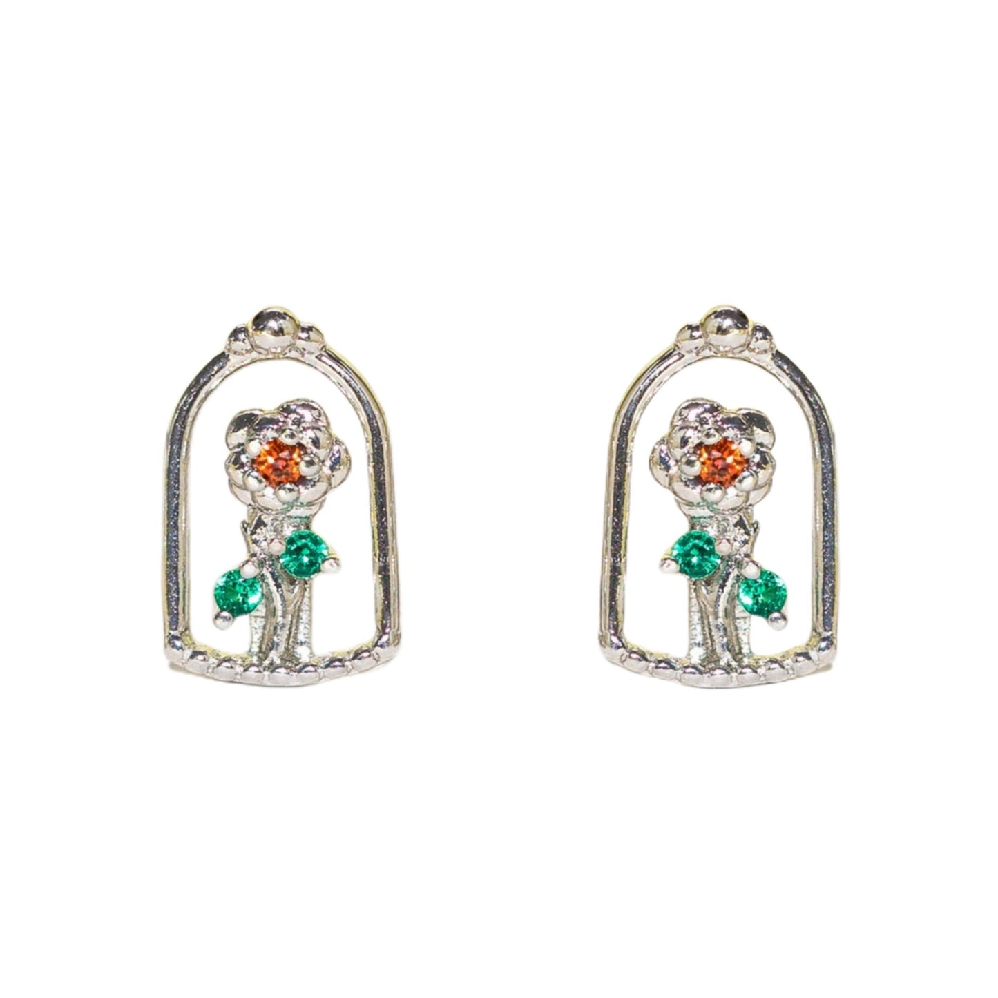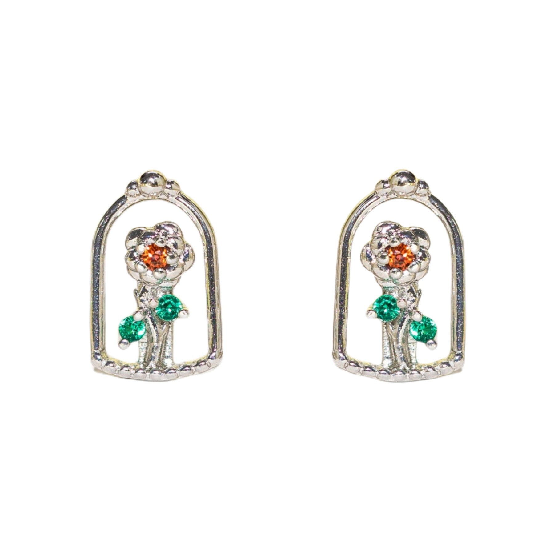 1 Set Sweet Cartoon Design 18K Gold Plated Brass Zircon Ear Studs Trio Set