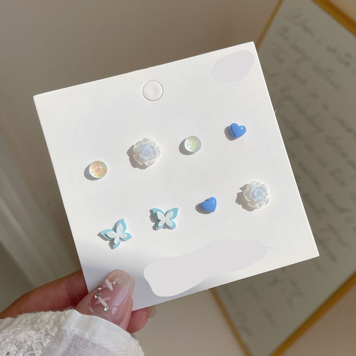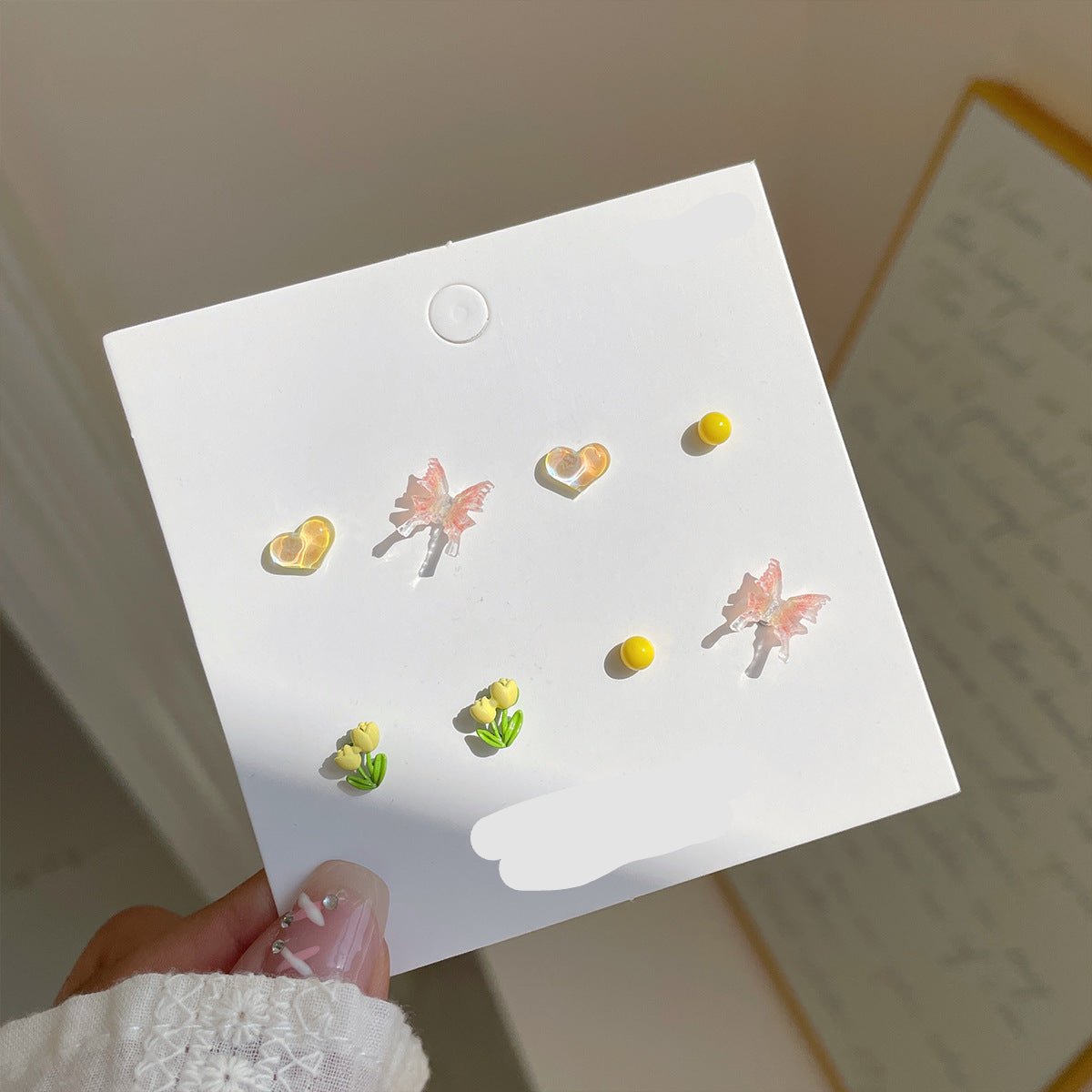 Sweet Heart Butterfly Flower Alloy Resin Stud Earrings Set