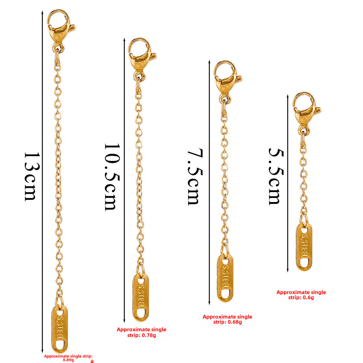 10 PCS 304 Stainless Steel Extension Chains for Necklaces and Bracelets