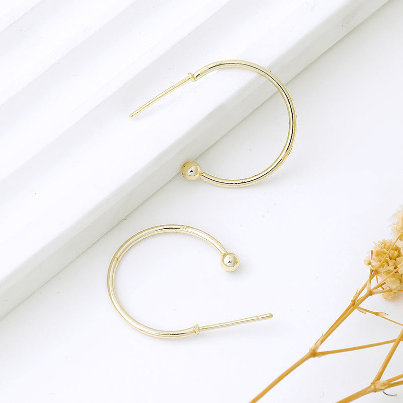 18K Real Gold [Real Gold Color Retention] / REAL GOLD-PLATED 925 SILVER NEEDLE C-RING EARRINGS 22MM