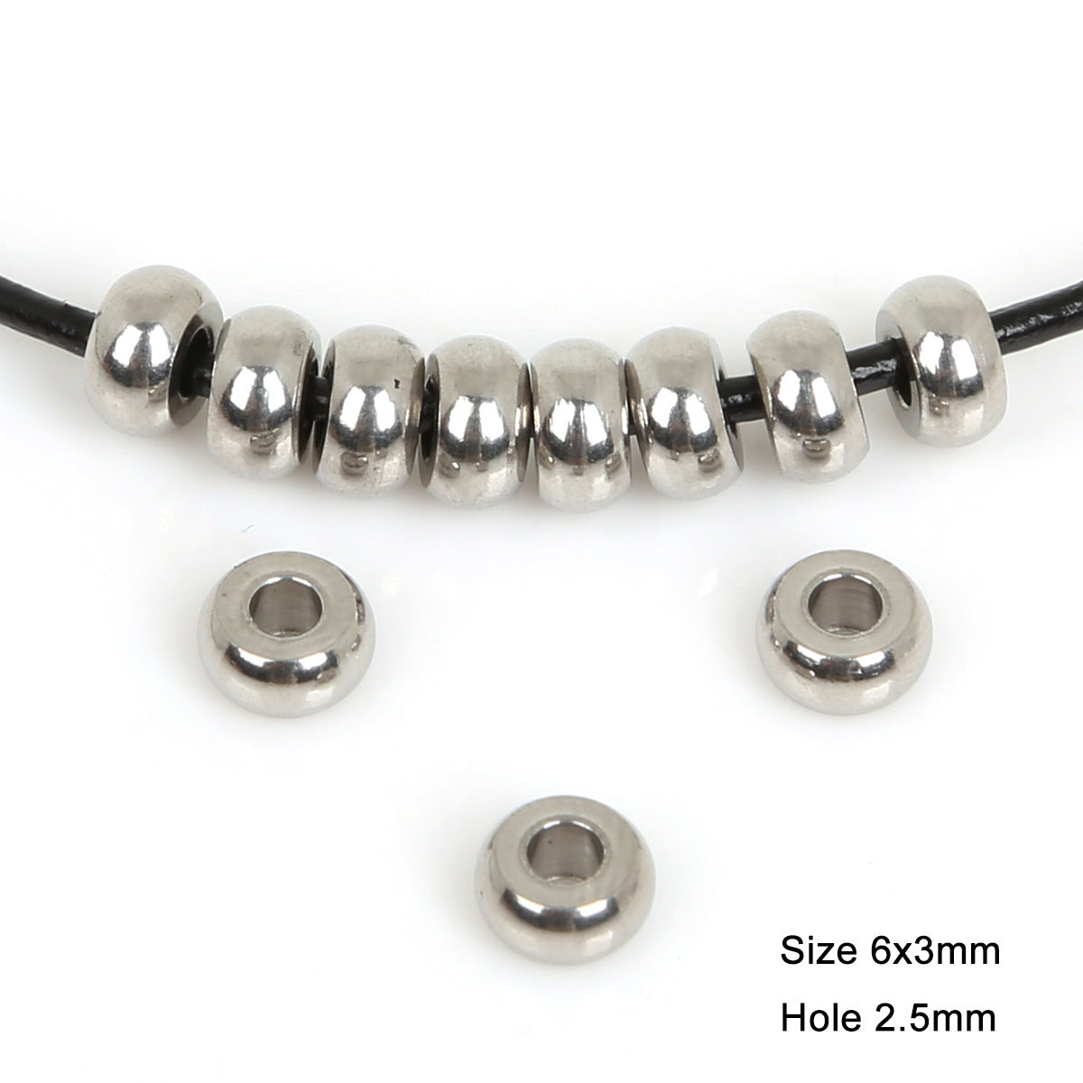 Stainless steel oblate beads 6x3mm aperture 2.5mm 20pcs bag