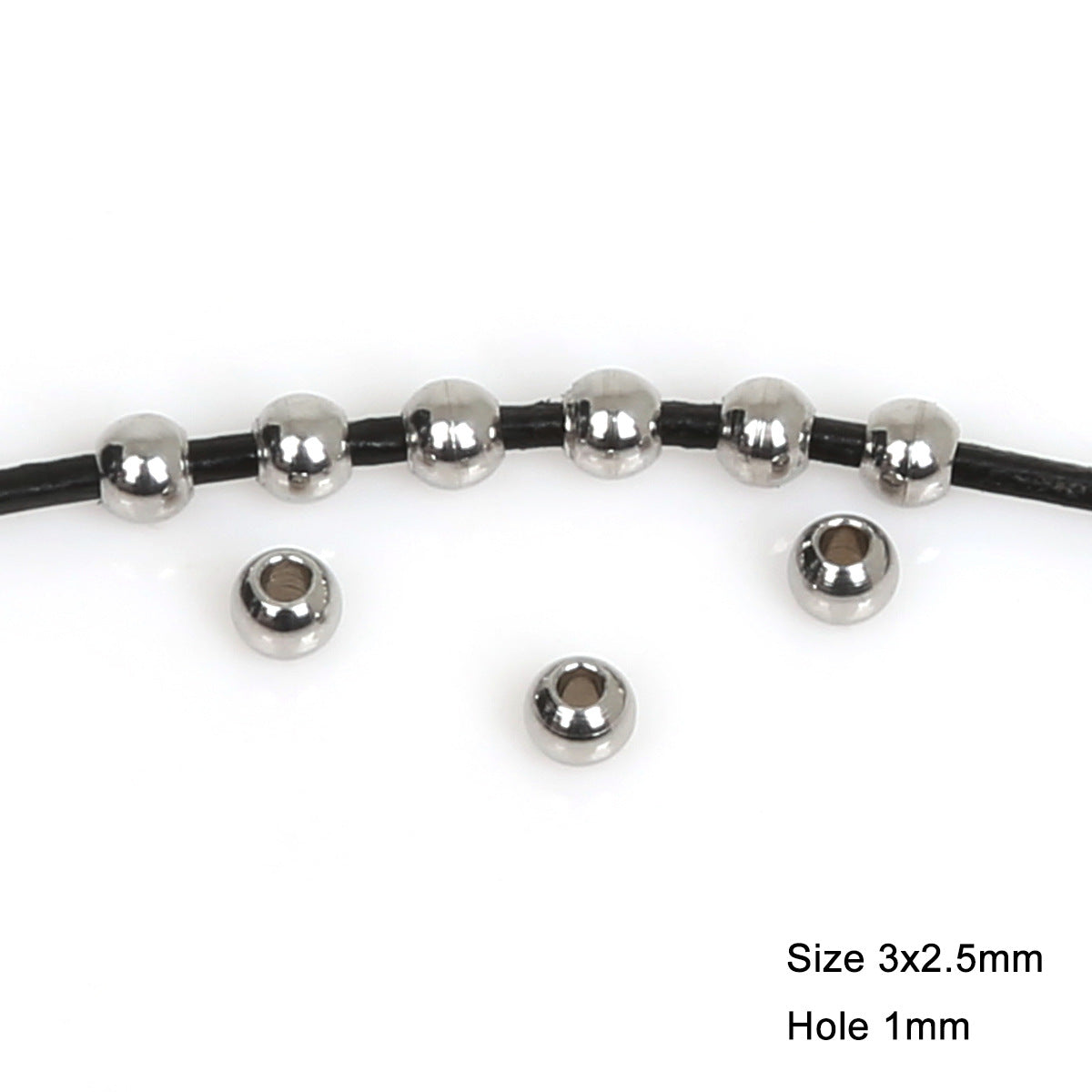 Stainless Steel Round Bead (Steel Ball) 3x2.5mm Hole Diameter 1mm 50pcs Bag
