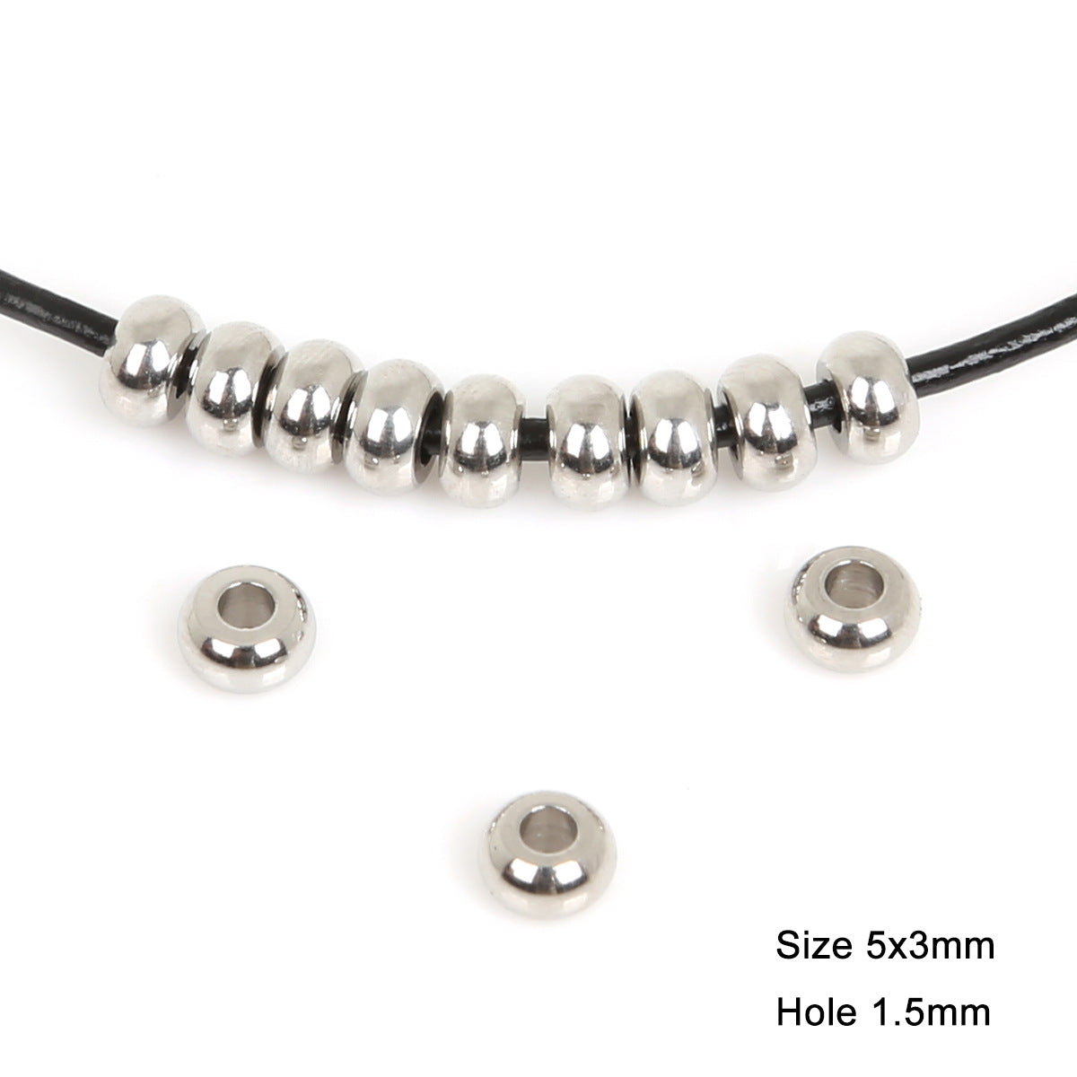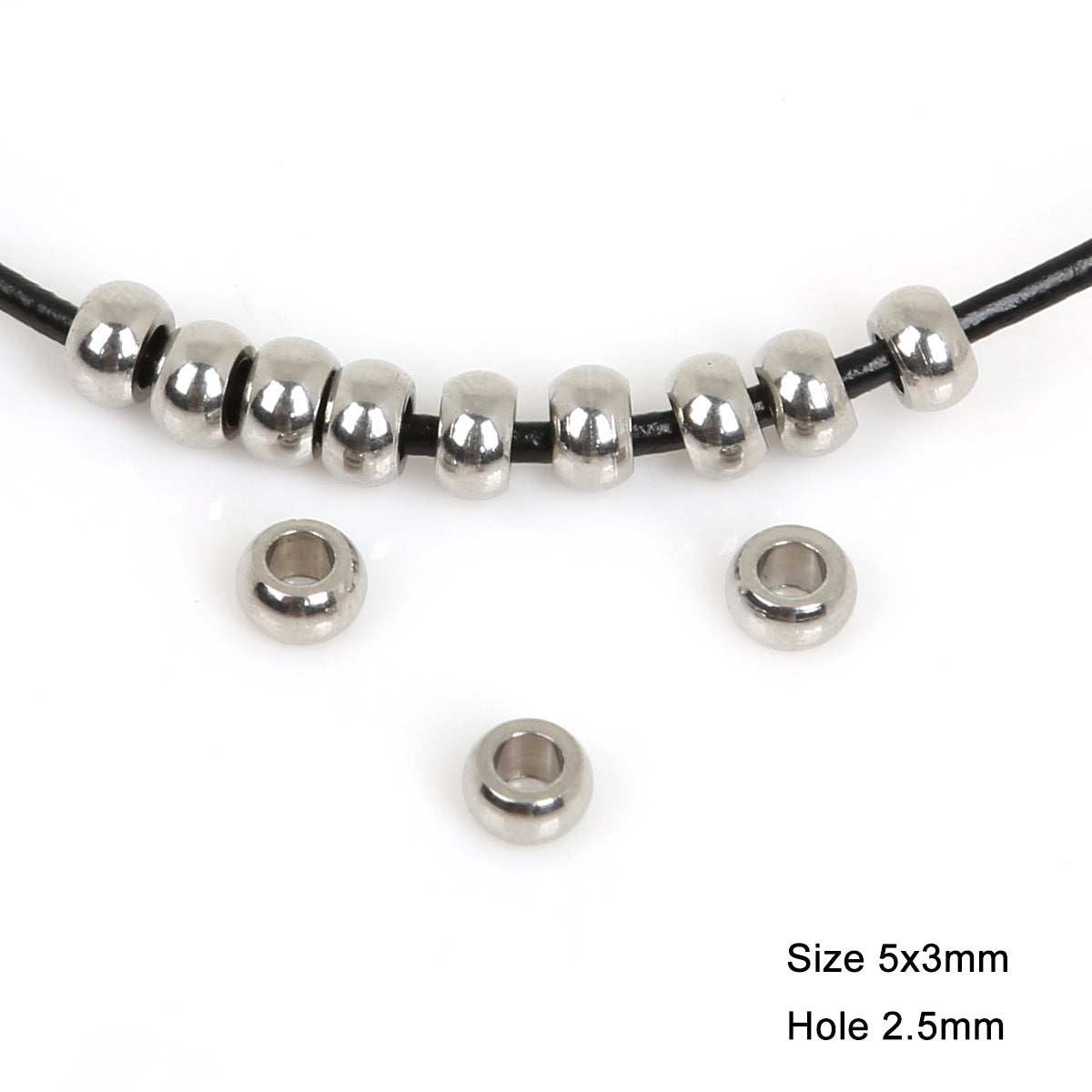 Stainless steel oblate beads 5x3mm bore diameter 2.5mm 20pcs bag