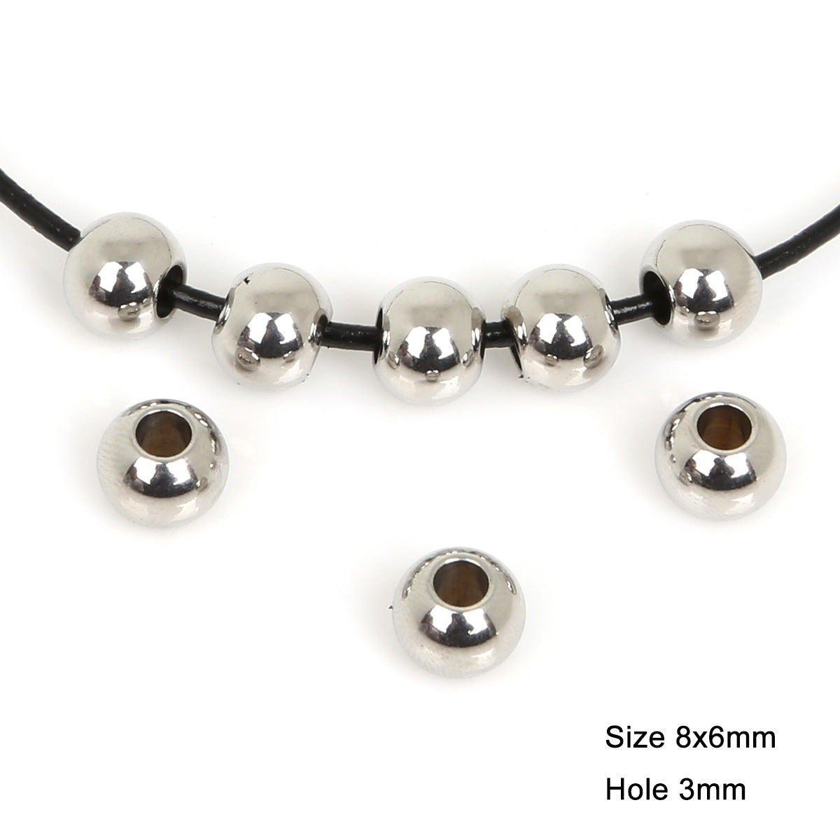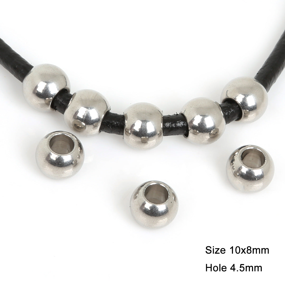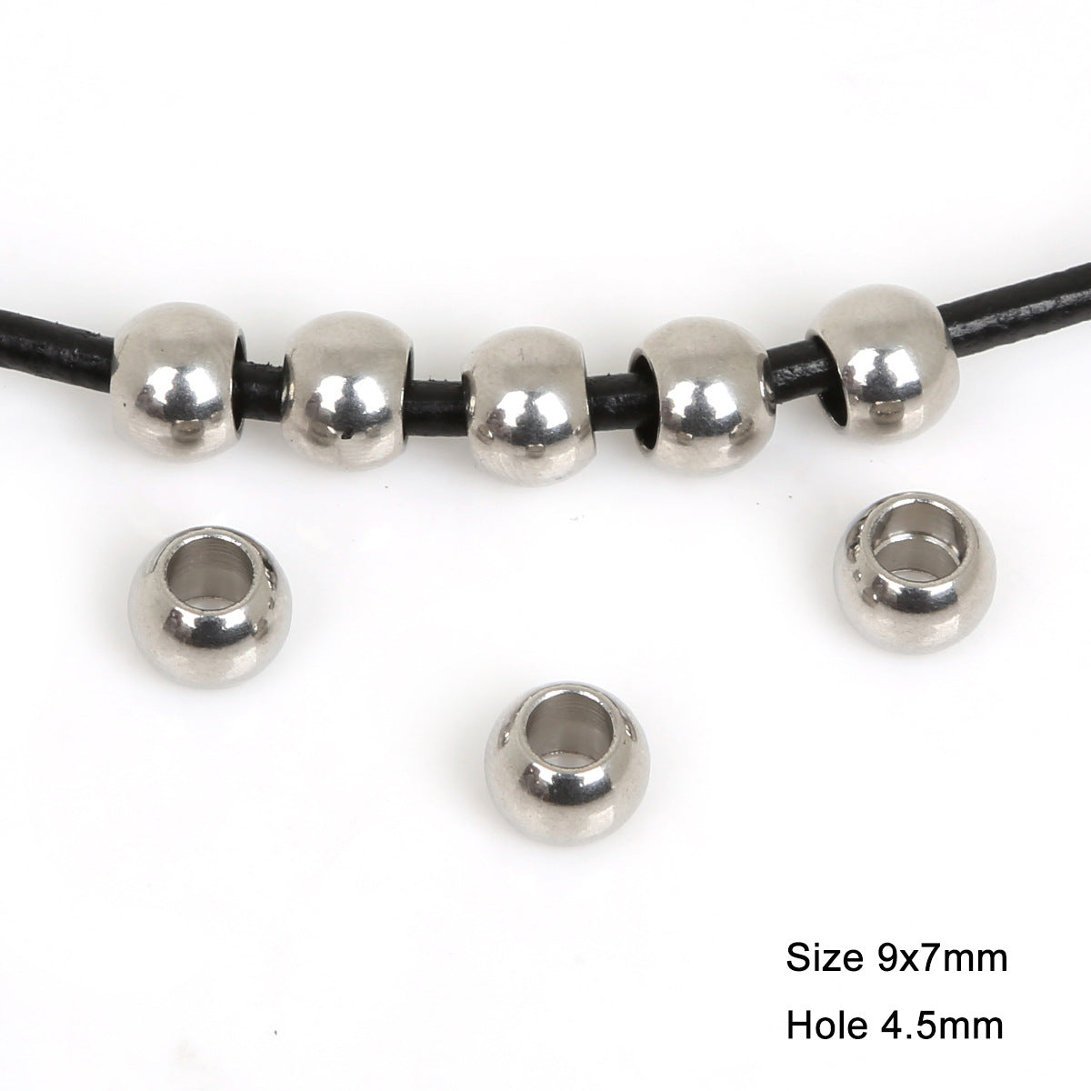 Stainless Steel Round Bead (Steel Ball) 9x7mm Hole Diameter 4.5mm 10pcs Bag