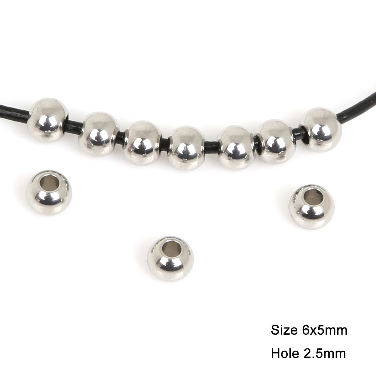 Stainless steel round beads (steel balls) 6x5mm hole diameter 2.5mm 50pcs bag