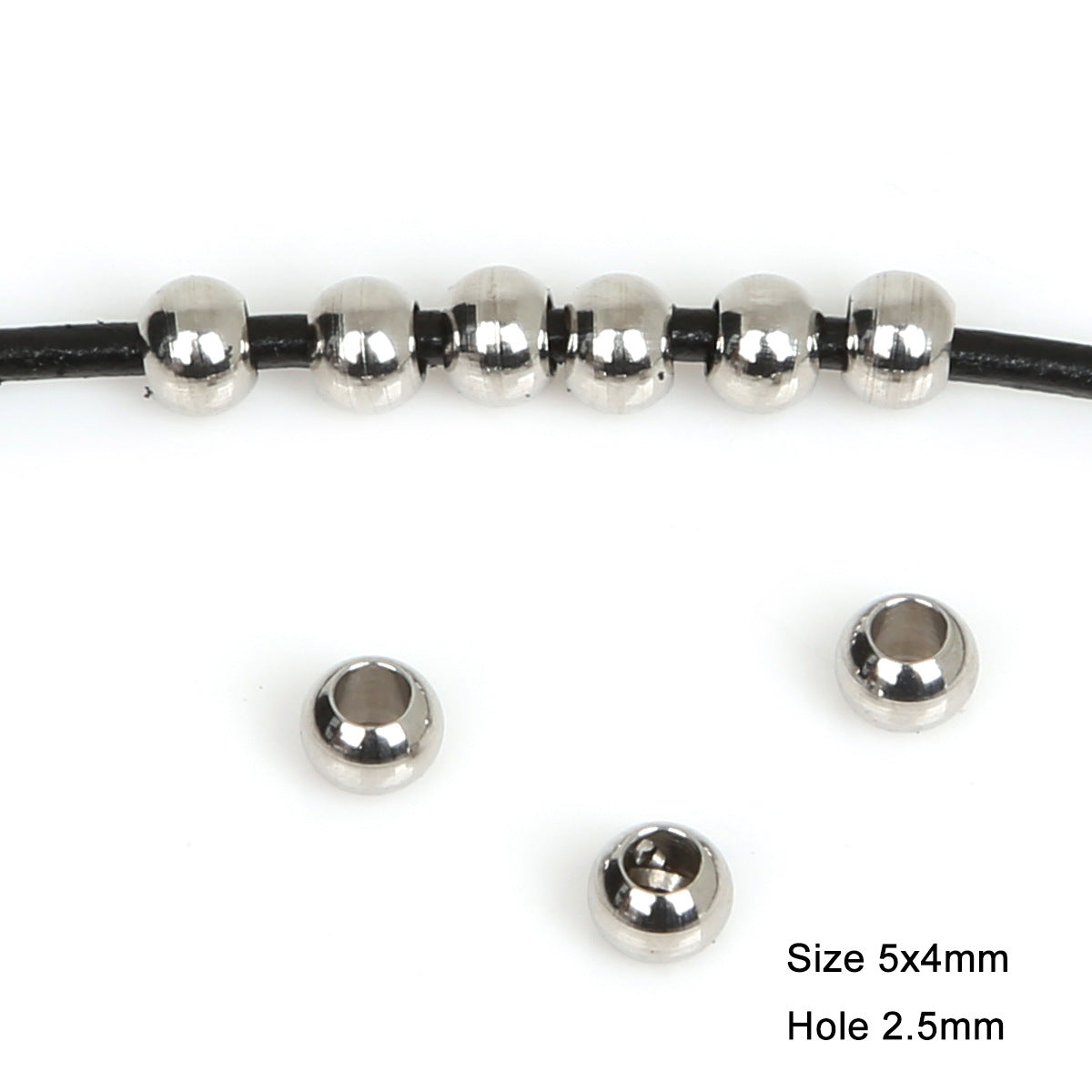 Stainless Steel Round Bead (Steel Ball) 5x4mm Hole Diameter 2.5mm 50pcs Bag
