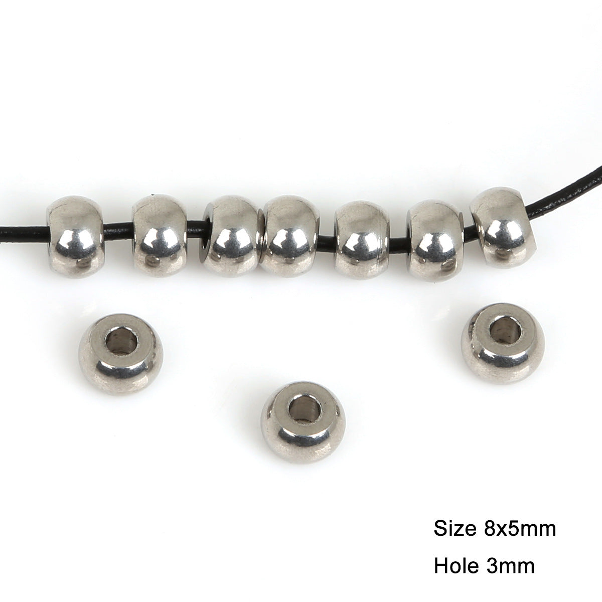 Stainless steel oblate beads 8x5mm aperture 3mm 20pcs bag