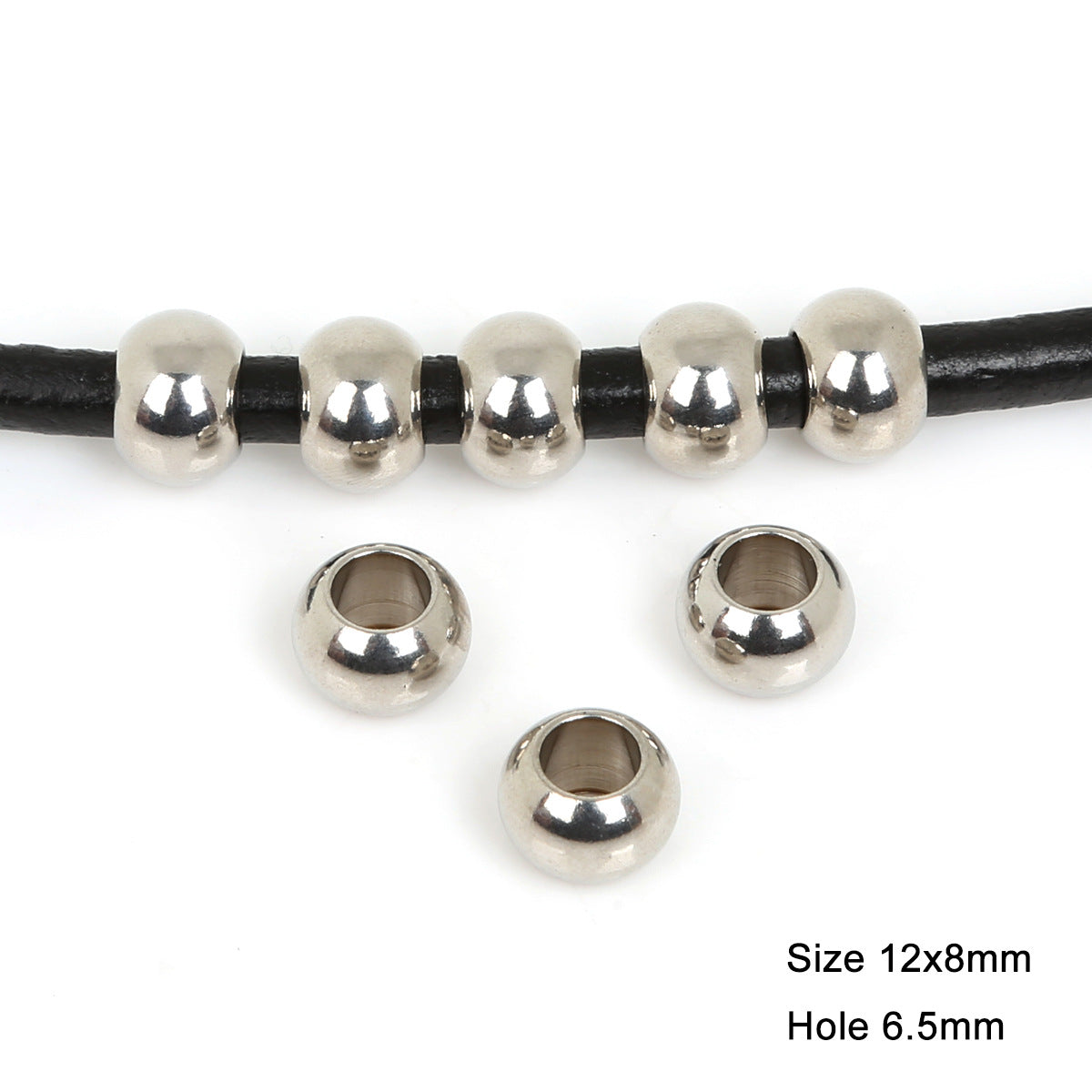 Stainless steel round bead (steel ball) 12x8mm hole diameter 6.5mm 5pcs bag