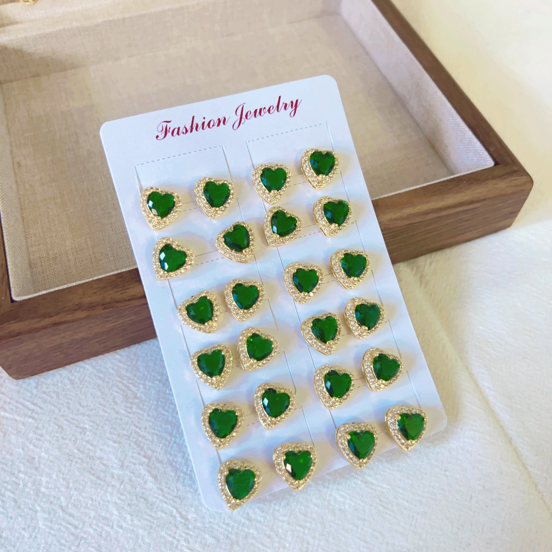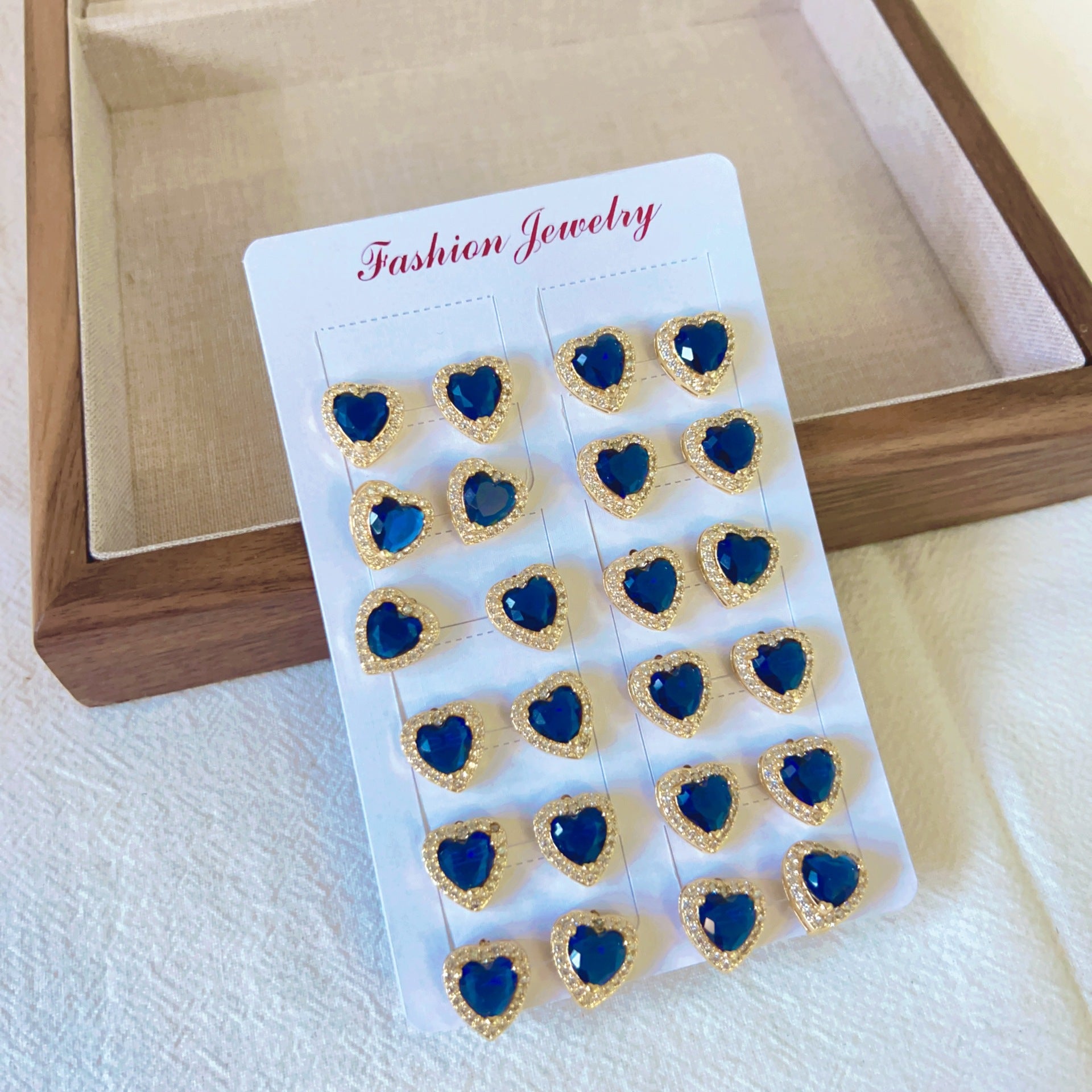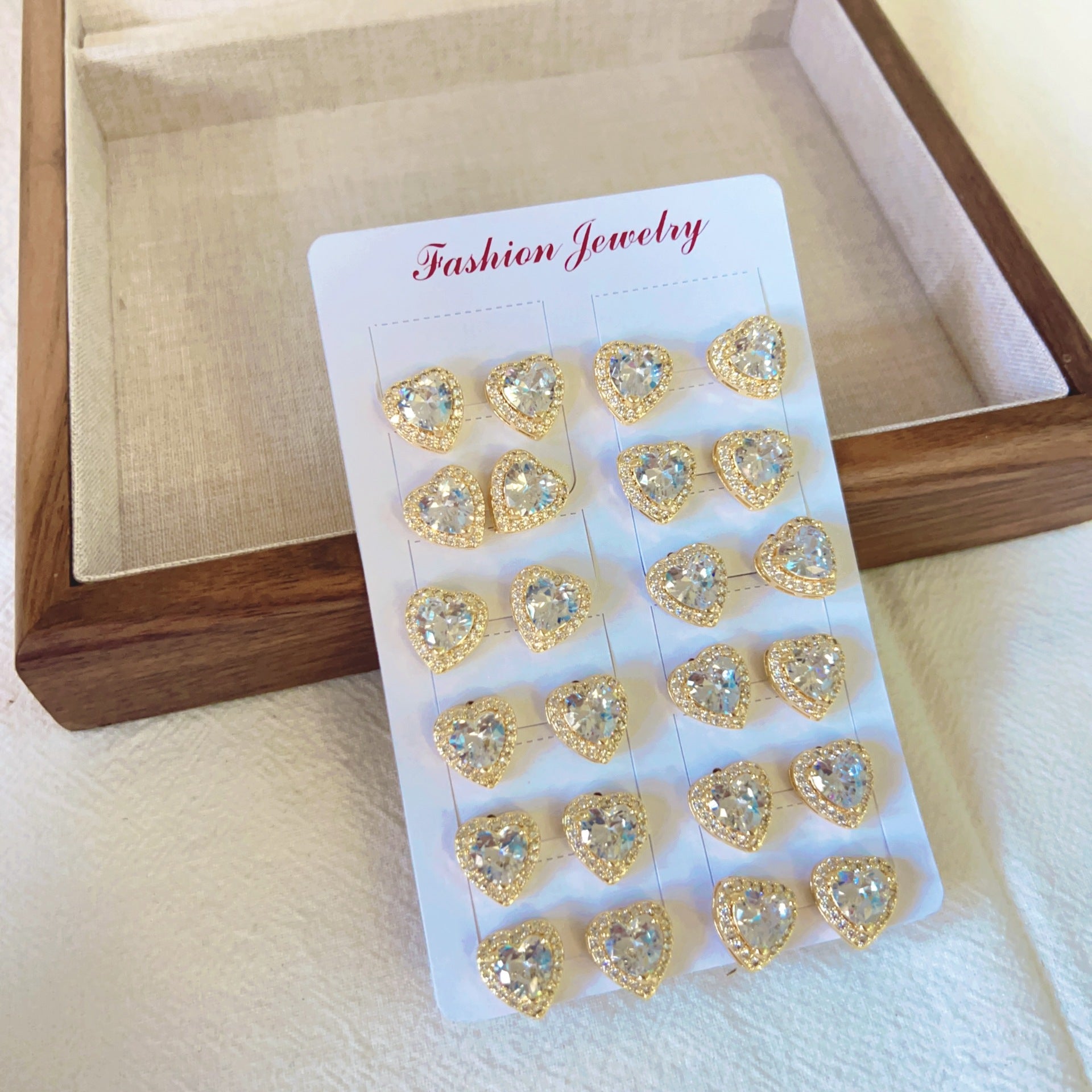 12-Piece Set Elegant Heart Shaped Copper Zircon Stud Earrings
