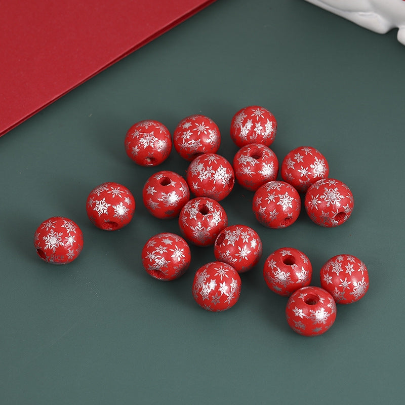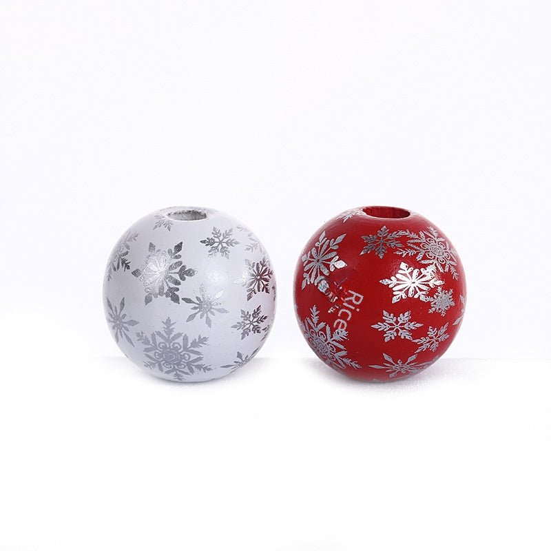 16mm Round Silver Snowflake Christmas Wooden Beads for DIY Jewelry and Decorations