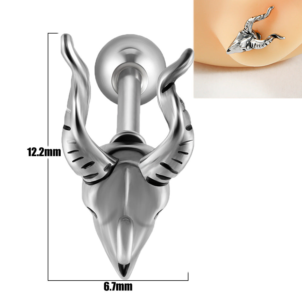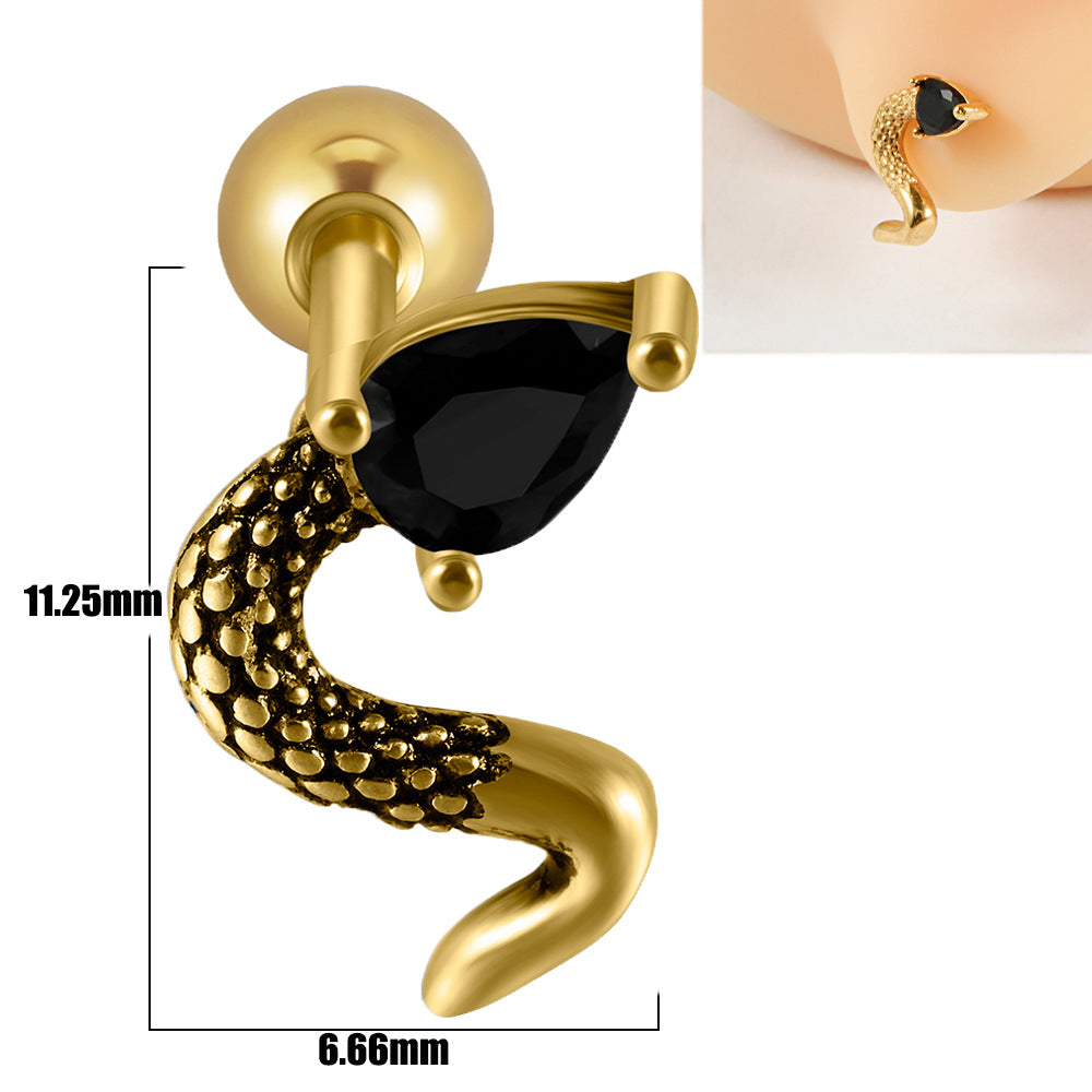 18K Gold Plated Stainless Steel Zircon Ghost Head Snake Earrings & Ear Cartilage Rings