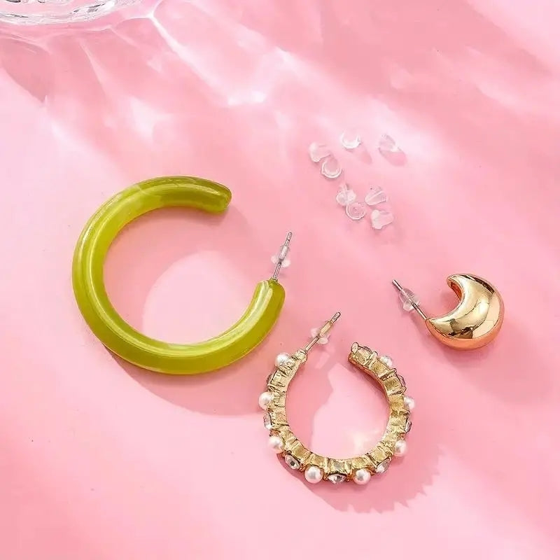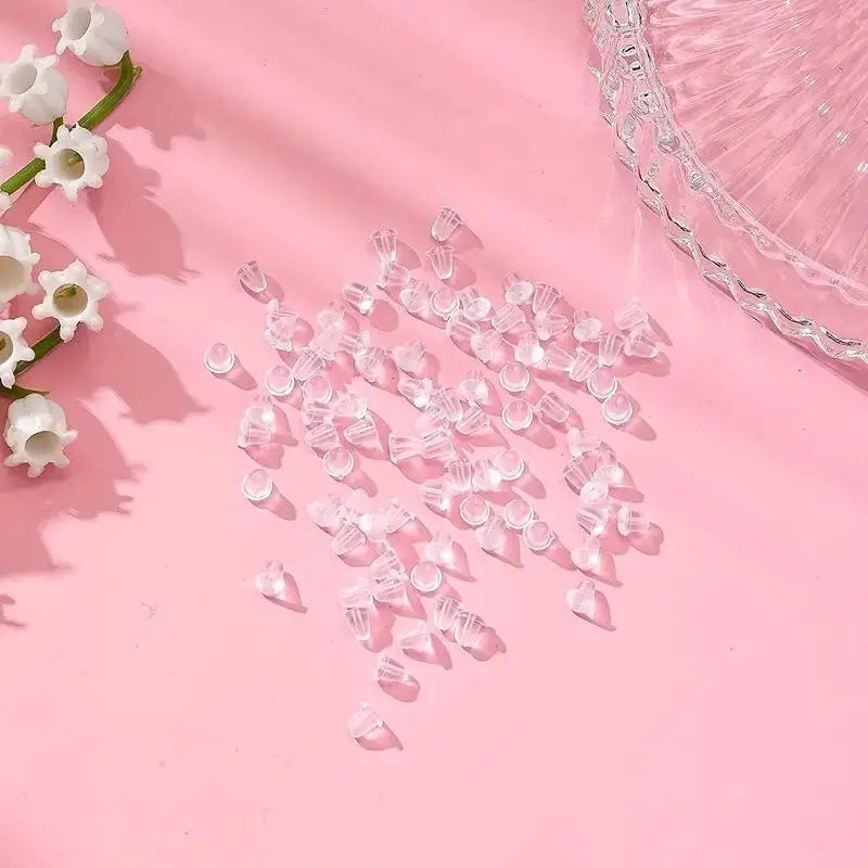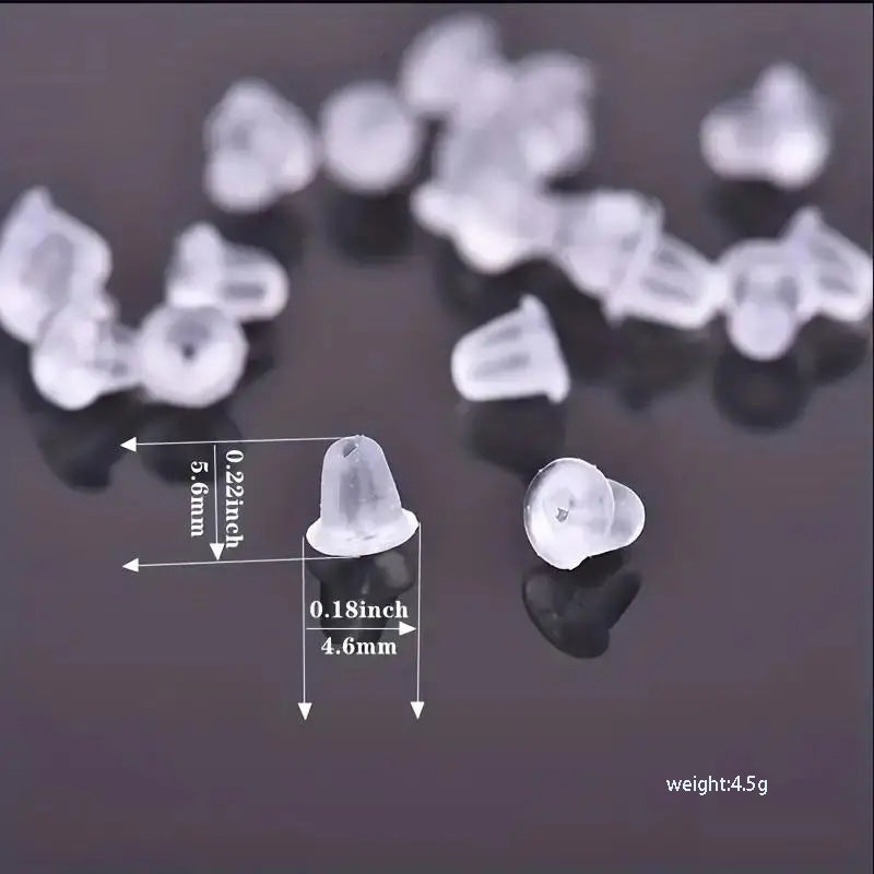 200 Pieces 4mm Diameter Rubber Geometric Earplugs with 925 Silver Earring Backs