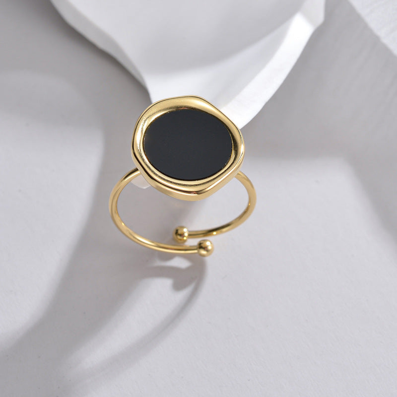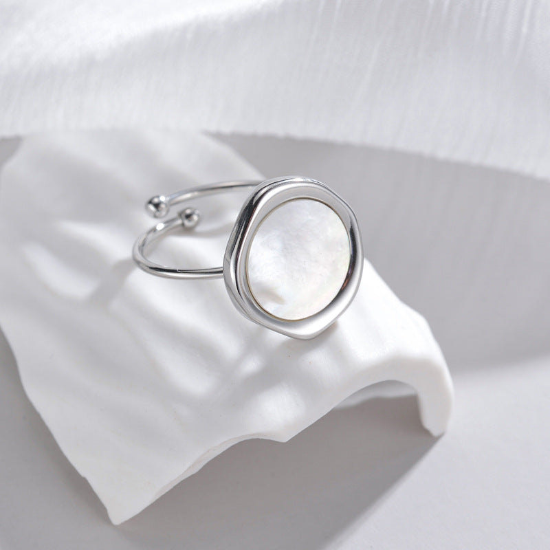18K Gold Plated Asymmetrical Oval Shell Open Ring in Stainless Steel